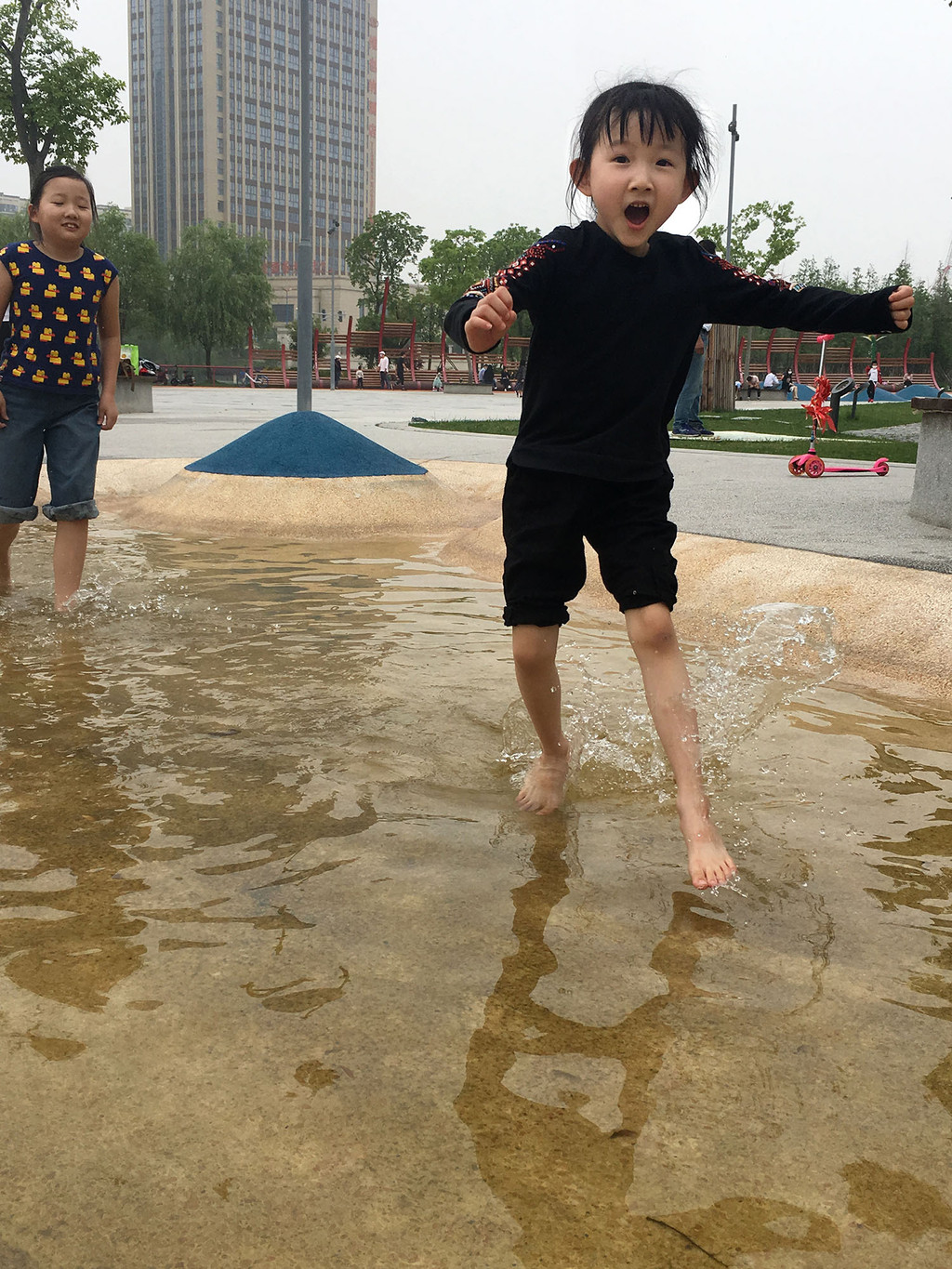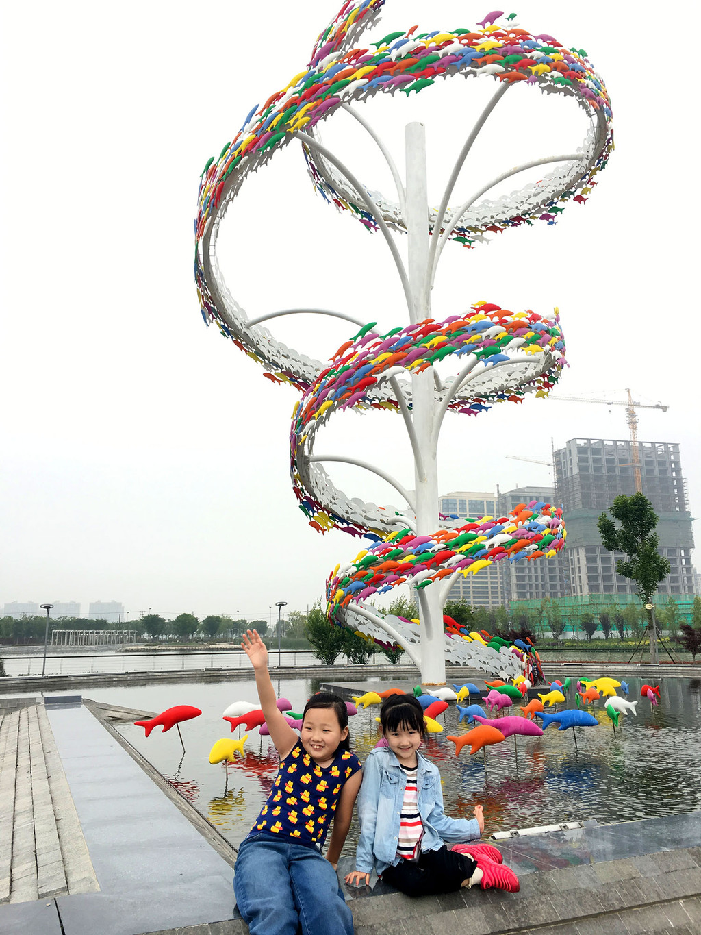 五月上旬,可以到饭店“堂食”了,饭后全家去新建的文创公园游玩,宝宝们那个开心哟!
