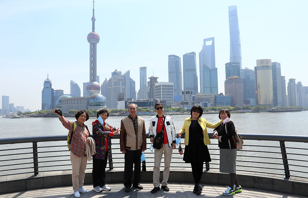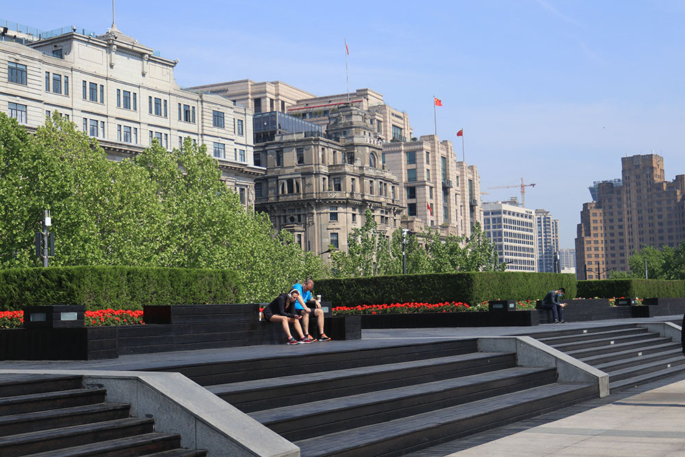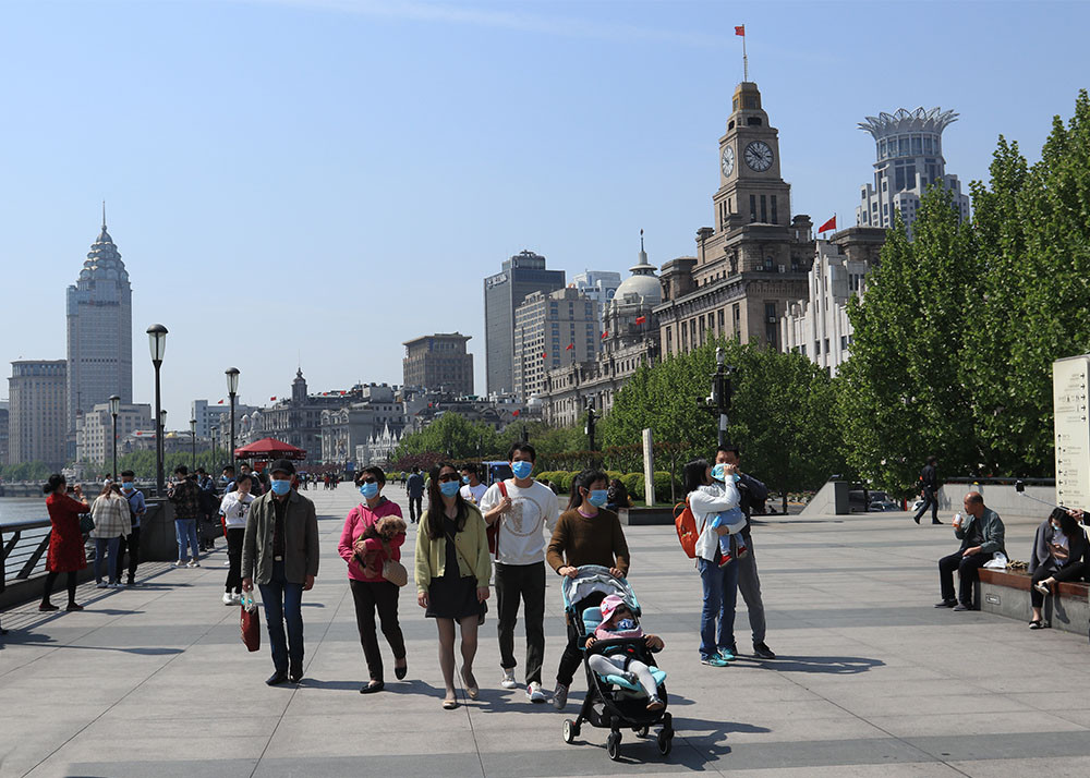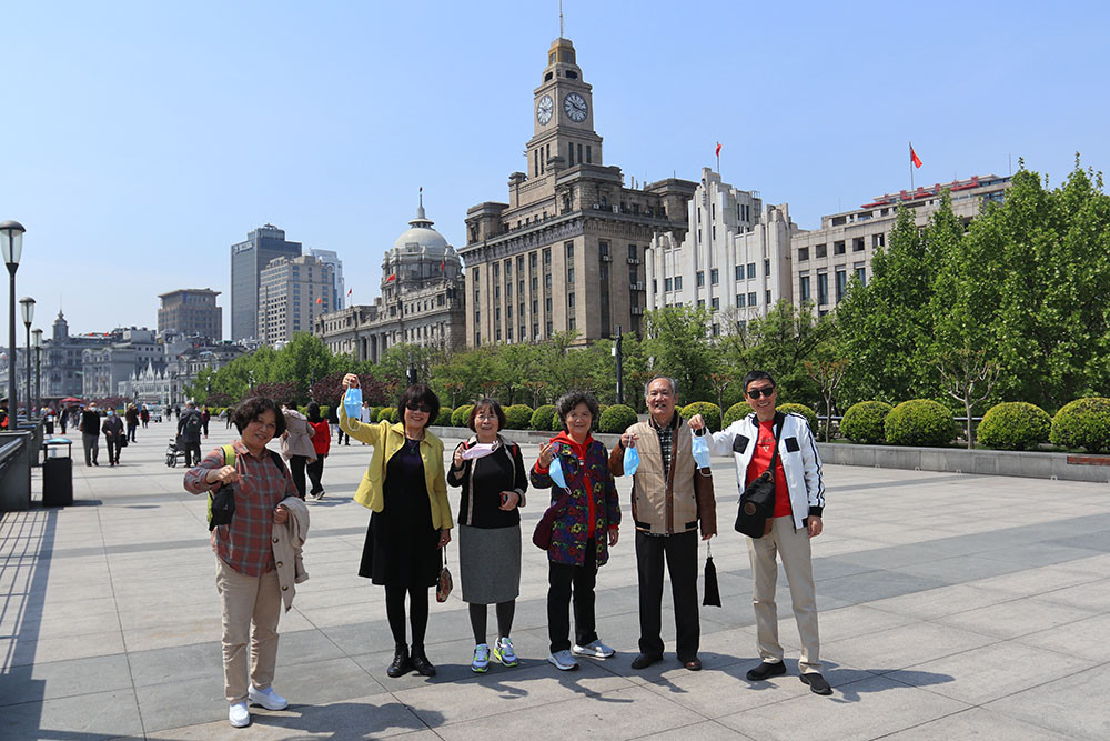 外滩的观景台上游客虽然不多,但已经有了生机,但愿疫情早日消失,人们回归正常的生活。