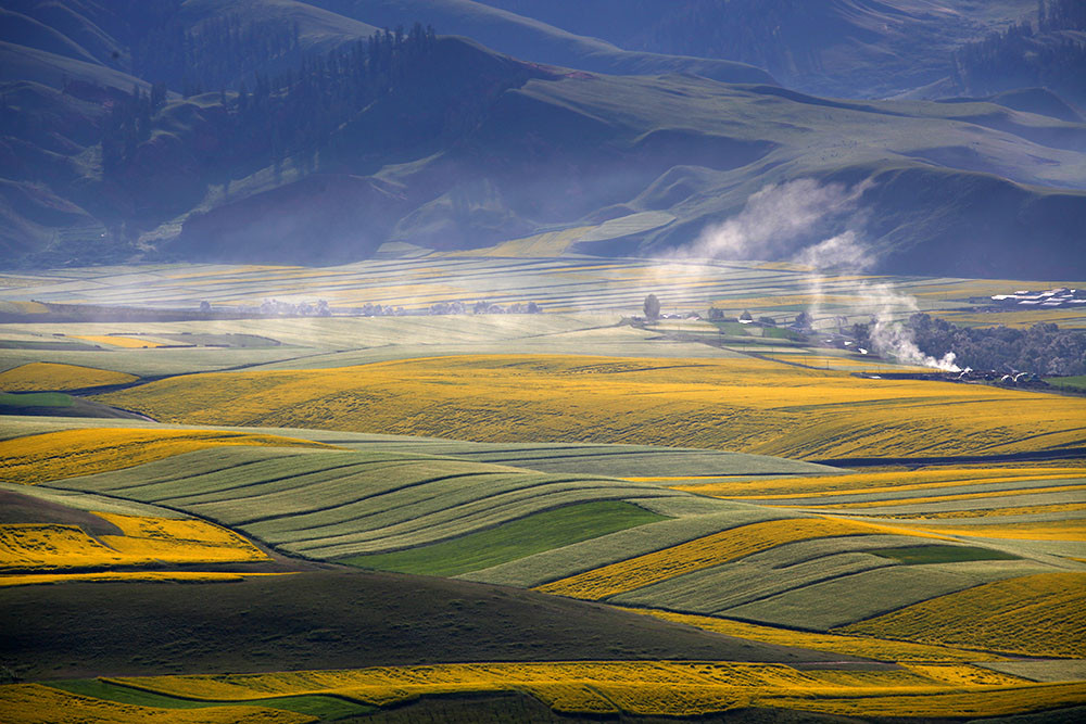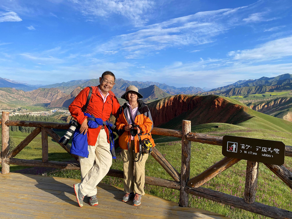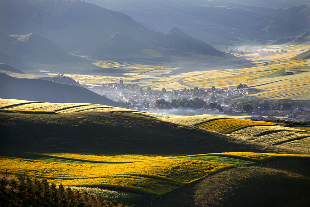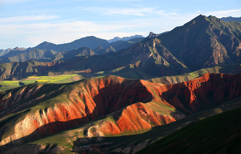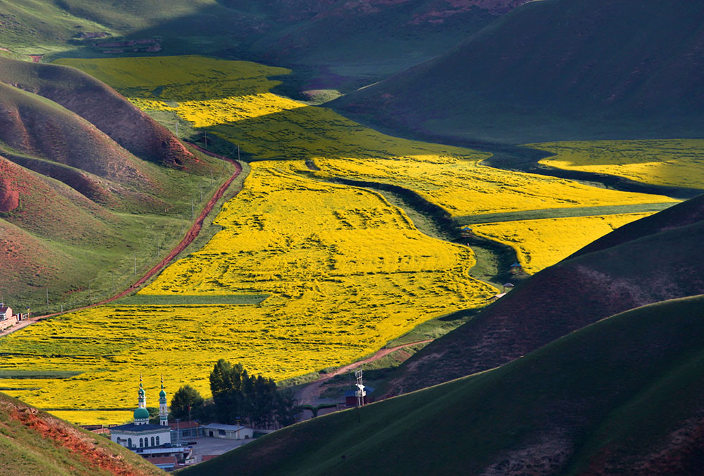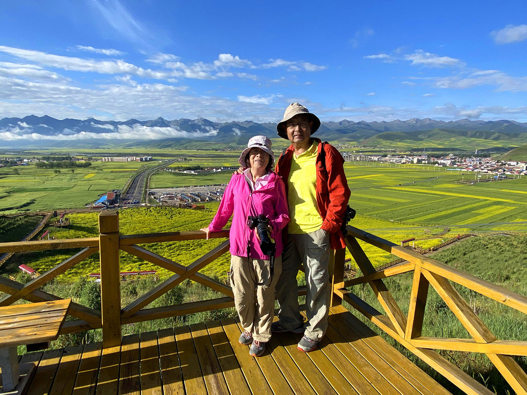 我和慕图雨天第三次登上了卓尔山,一样的季节,一样的风光:牧草青青,油菜花黄,丹霞赤壁,雪山辉映。