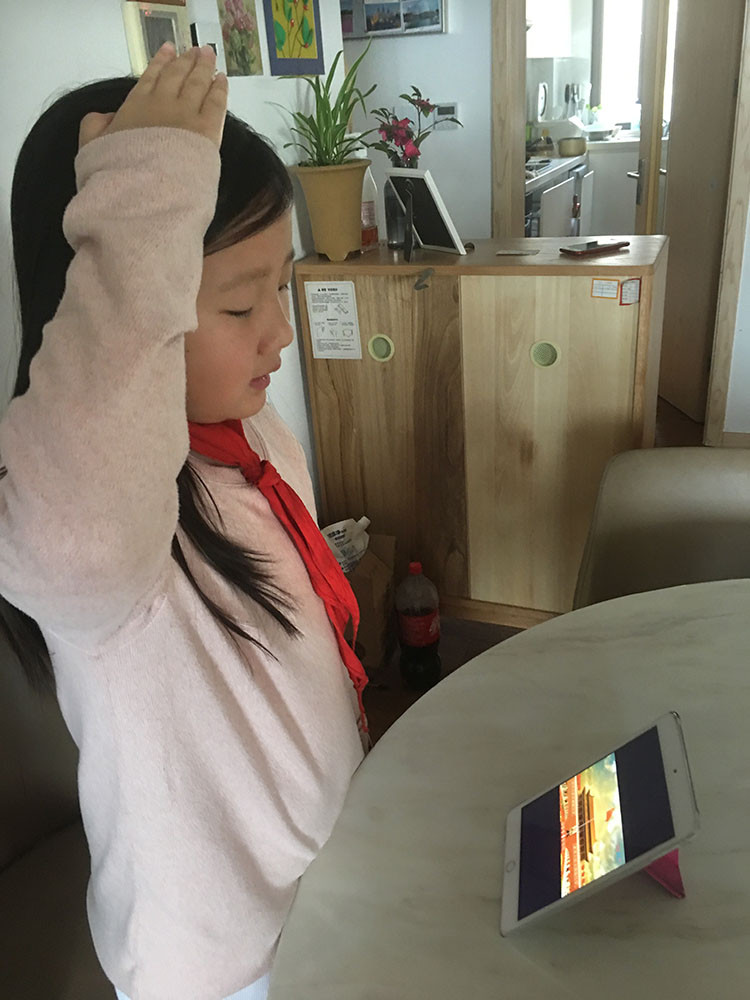 17日原本是上海中小学开学的日子,但因为疫情推迟了。网上举行唱国歌、升国旗仪式,墨墨早早的起了床,面对电脑上的画面,一面敬礼,一面唱国歌。