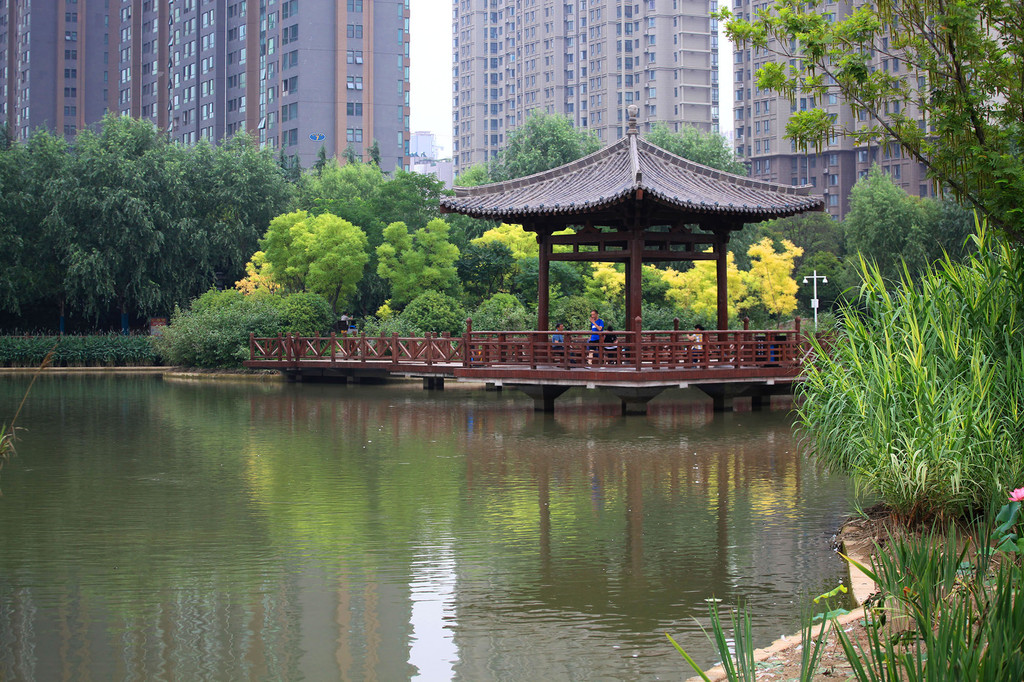 九州池是隋唐洛阳城的皇家池苑,遗址在原洛阳玻璃厂区内,现在恢复了部分景观,和慕图雨天去凑个热闹。