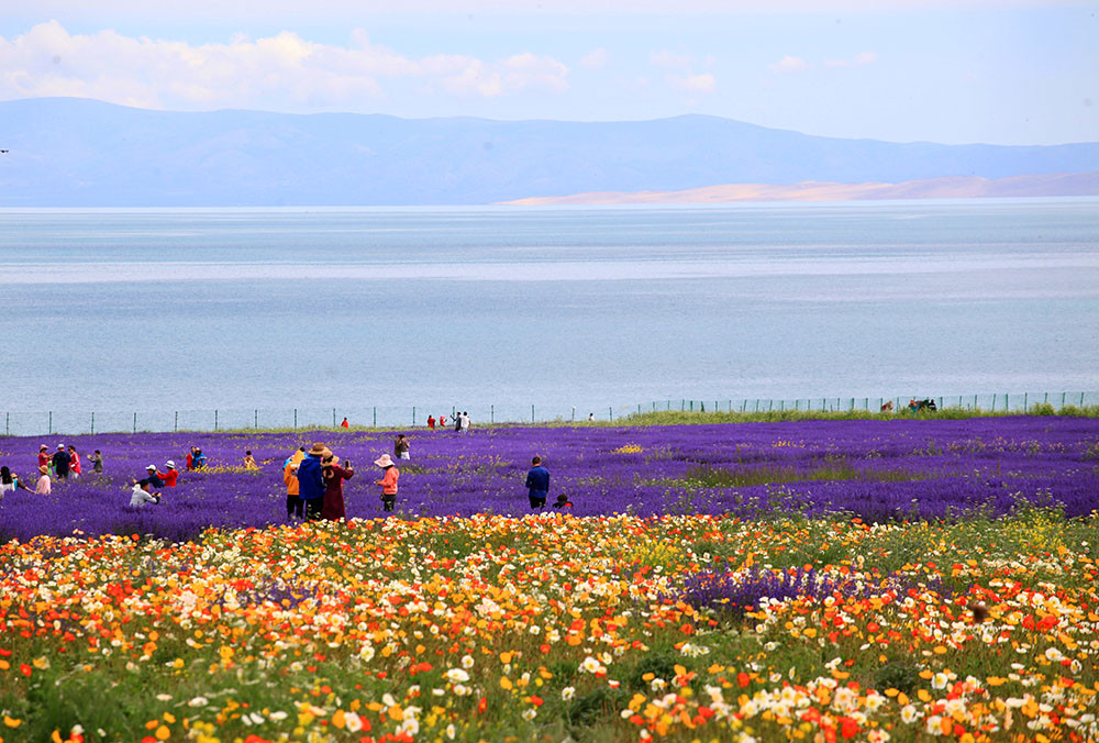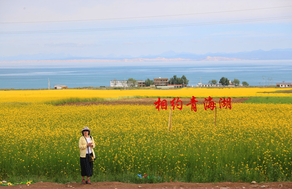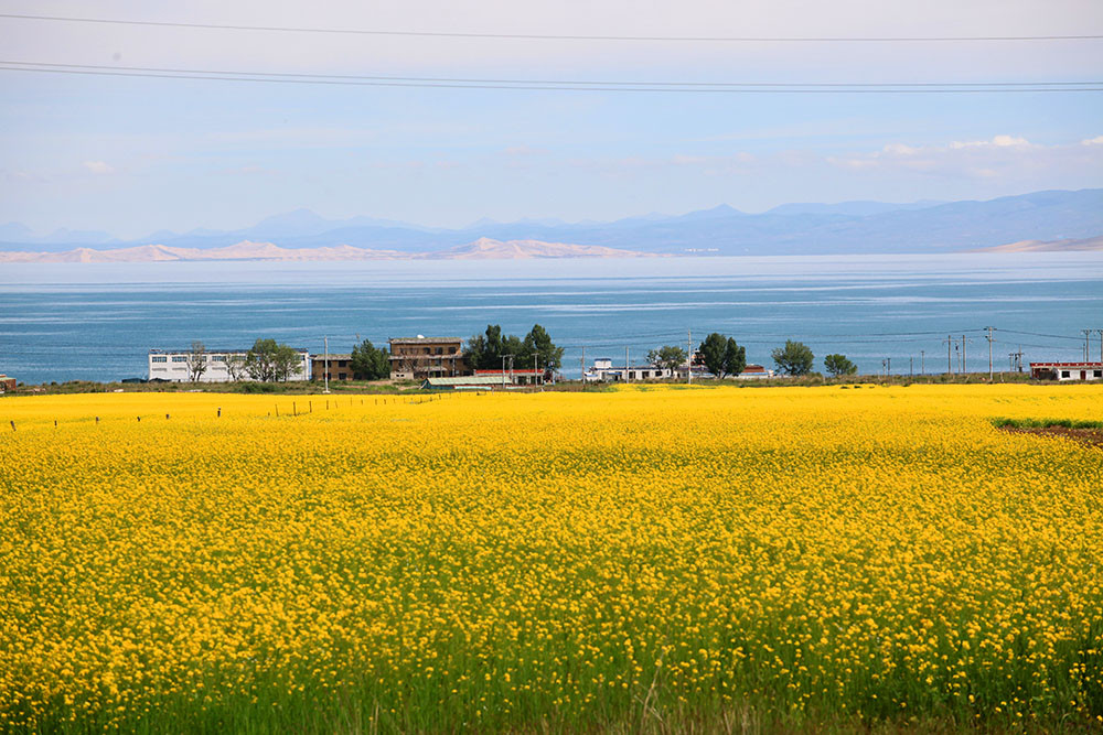 青海湖畔的油菜花开的正艳,停下脚步,在路边小歇。花海的尽头是浩瀚的湖水,蓝天白云,花黄水碧,那是一幅幅大自然的美景。
