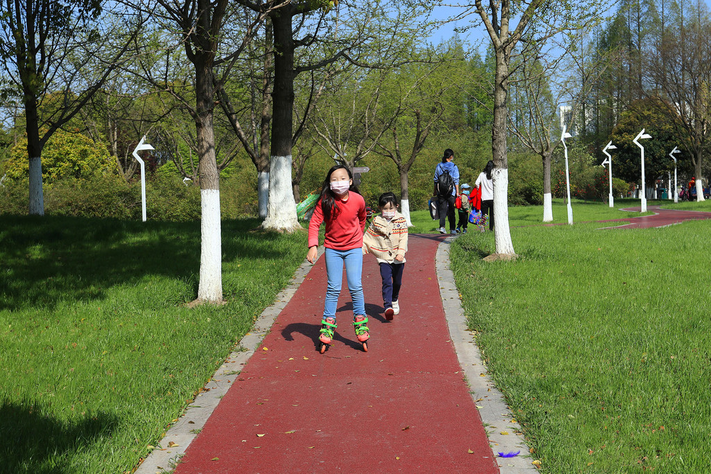 四月,国内的疫情控制越来越好,到公园里散步成为常态。墨墨的网上作业依然很多,每天带着婳婳、牵着多多出去遛弯儿。