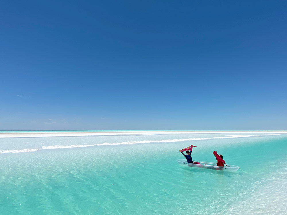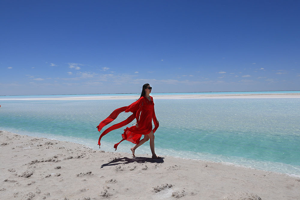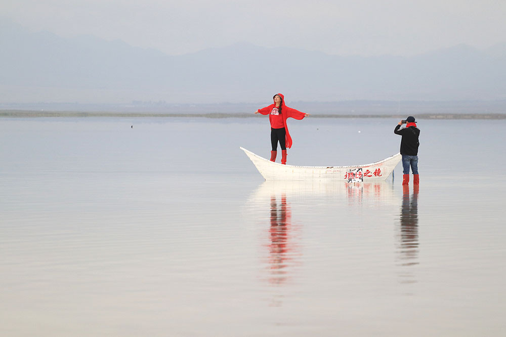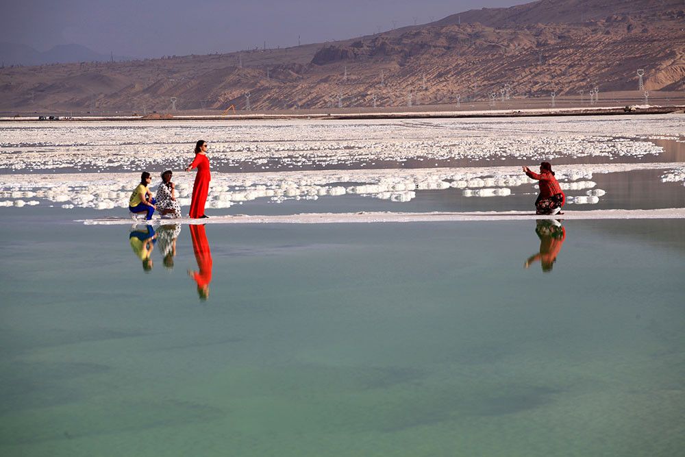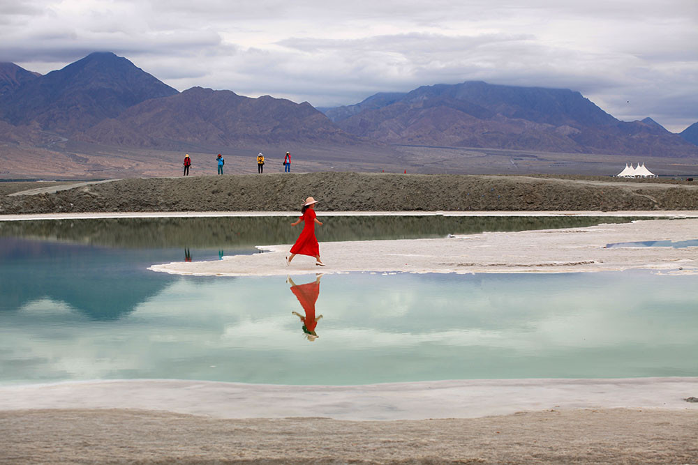 茫崖翡翠湖也非常漂亮,都是盐场开采留下的水坑,盐场在景区用盐修建了一个大大的T型台,供游客们走秀拍照。