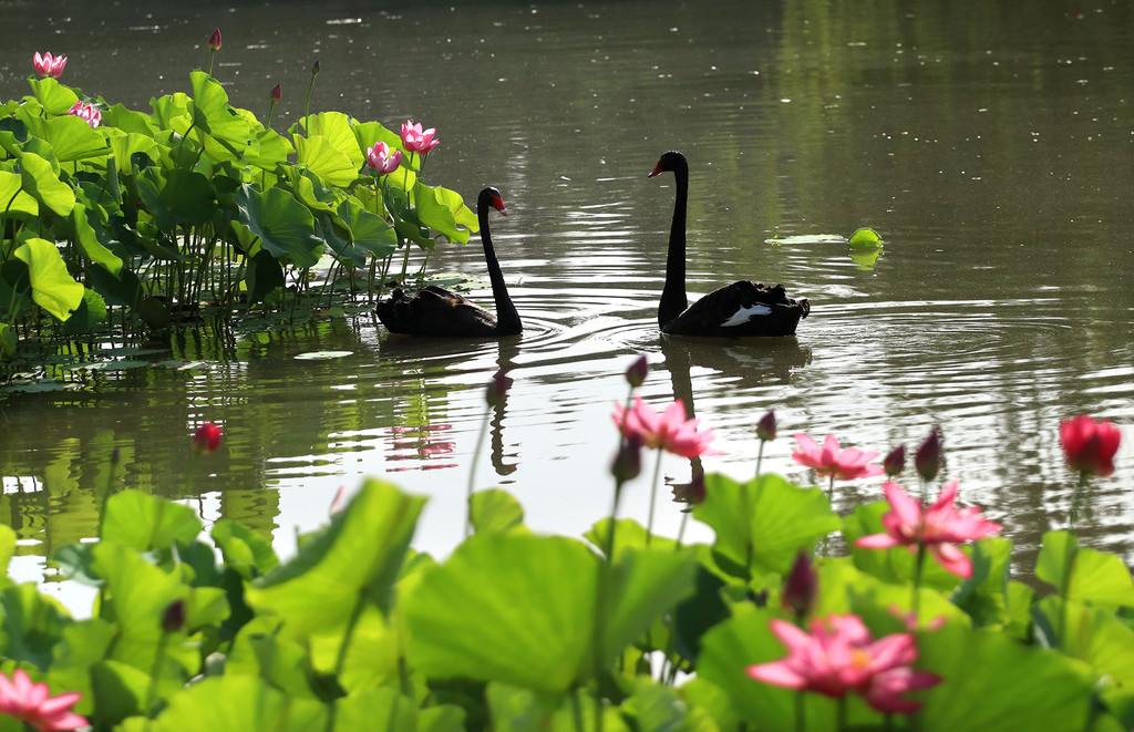 六月是荷花的世界,每天起早搭黑,和慕图雨天去国花园和隋唐城遗址植物园拍摄荷花,几只黑天鹅在荷花丛中漫游,为荷花池平添了几份生机。