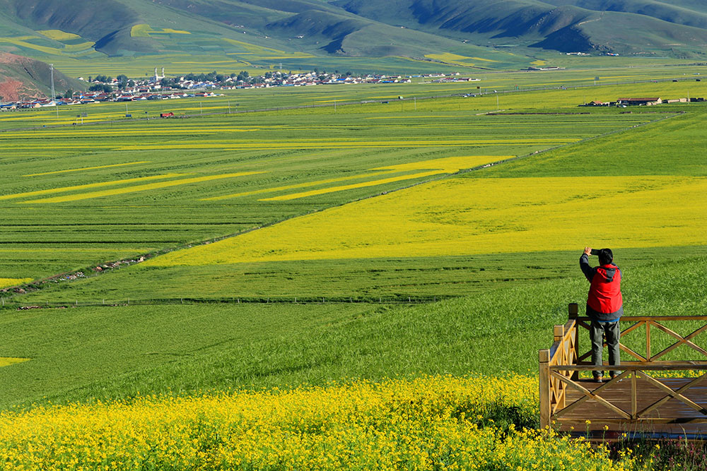门源油菜花有点衰败了,艳丽的黄色不再,站在圆山观景台上,依旧是雪山环伺,依旧是心旷神怡。