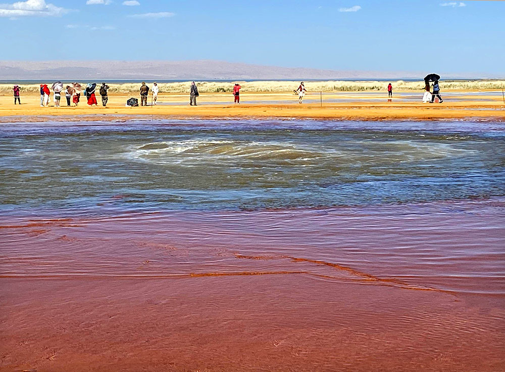 艾肯泉恐怕是这一路最奇特的地方了,粗大的水柱从地下涌出,在地表漫延开来,富含矿物质的泉水常年沉淀、累积,形成了或红或黄的地质奇观,和美国黄石公园的大棱镜泉有得一拼。