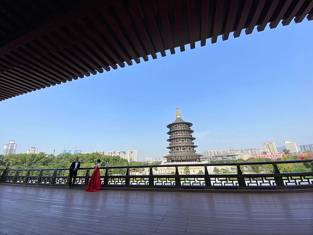 洛邑古城依旧热闹,文峰塔高高的耸立在那里,穿过状元桥,热闹的商业街上,不少身着汉服的年轻人在悠闲的拍照。