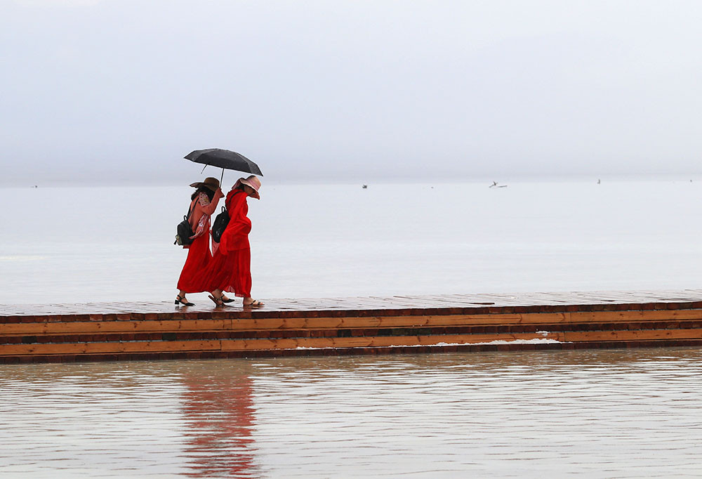 兴洛湖是洛阳中轴线上的花园绿地,湖水清澈,植被茂密,一条条木栈道连接着亭台楼阁和小桥流水,那是我和慕图雨天喜欢遛弯的地方。