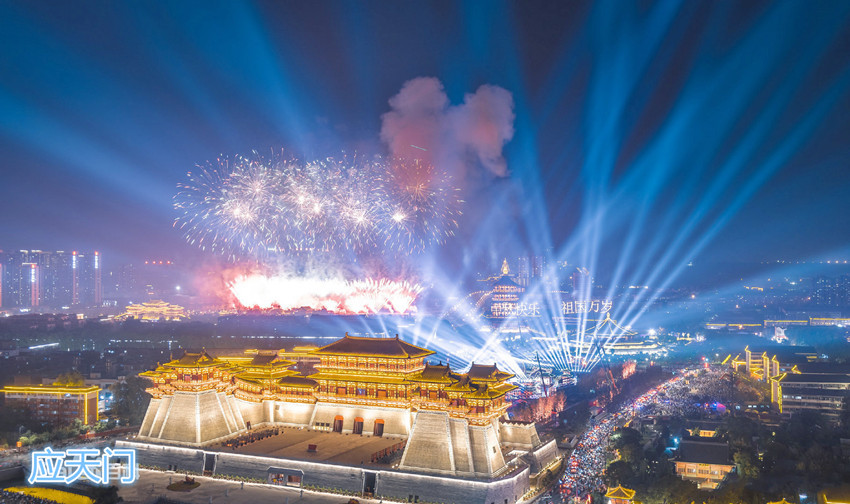 2019年9月13日,一座东西长120米,南北宽60米,通高36米的庞大建筑拔地而起,完全改变了这个十字路口的模样。这座建筑便是2020年央视中秋晚会的举办地——应天门。