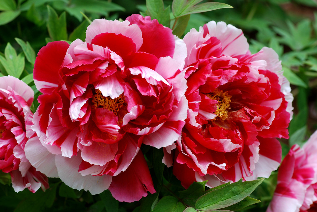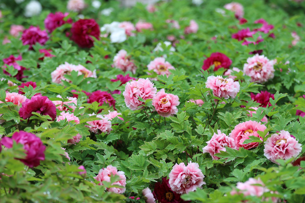 王城公园遍布着国内外精品牡丹近500种,不仅种类多样,而且颜色齐全,尤以两种花色合二为一的牡丹为奇。它们或一株双色,或一花双色,均为洛阳牡丹的传统珍品。另外观赏区还有很多黑色系牡丹,比如黑海撒金、珠光墨润等,让人目不暇接。