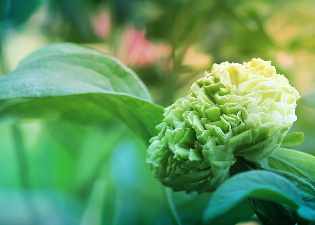 最喜欢的要数反其道而行之的“豆绿”牡丹和“蓝”牡丹。豆绿牡丹是绿色系中最典型的代表,属于中花期品种,花期比较长。盛开时呈现青绿色,由内往外层层变淡,风韵独特,有一种雅致的美。“蓝”牡丹又叫兰玉,实际上粉色里面透着蓝韵,给人一种奇妙的感觉。
