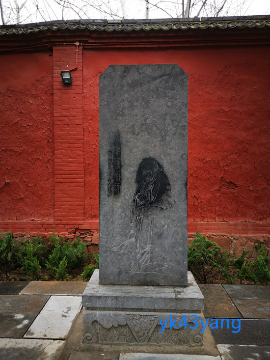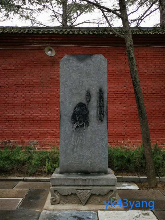 然后再一路向西,西墙尽头是竺法兰大师的墓葬。他的墓前也有大师的画像碑。
