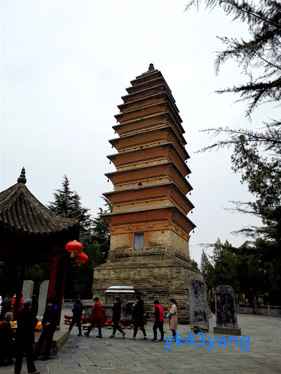 来到了齐云塔前。齐云塔又称释迦舍利塔,始建于东汉永平十二年,也即白马寺建寺的第二年。据说初建的齐云塔为木塔,塔高九层。后来,木塔屡有毁建。现在所见,为金大定十五年重修,距今已有八百多年的历史
