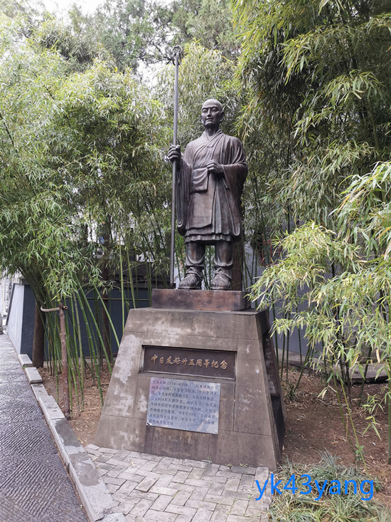 空海大师(774——835)是日本密宗的开山祖师。唐德宗贞元二十年,空海来中国学习佛法。他曾经拜中国密宗大师德慧果为师,据传也曾在白马寺学习。回到日本后,他在日本奈良东大寺宏传密宗,世称“东密”。这尊塑像立于1997年,是为纪念中日友好25周年,由日本佛教界的友好人士捐赠的。