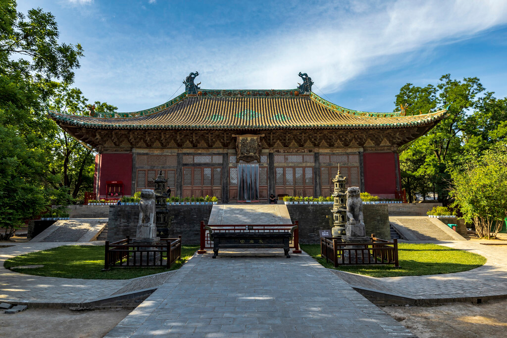 广仁王庙虽有售票处,但不用买票,登记一下即可。进去眼睛为之一亮,虽然占地不大,布局却很有格调。网上查了资料,才知道是王石等人捐资,由清华大学建筑系专家参考了梁思成的《图像中国建筑史》设计,修建了保护设施。虽然新,但不俗,不过这也是我个人看法,见仁见智,但比起一些古建筑,修缮过后不仅没了古意,还多了一分俗气,总要好得多。旁边墙上逐一介绍运城和临汾两市古建分布情况,我们一一拍了下来,作为以后旅行规划的参考。