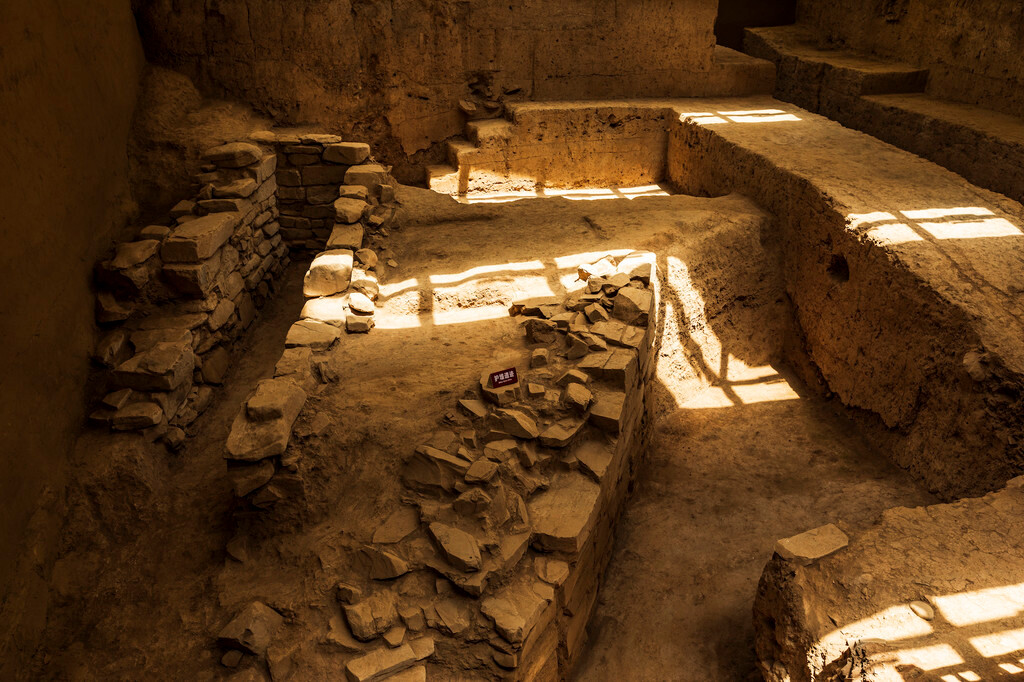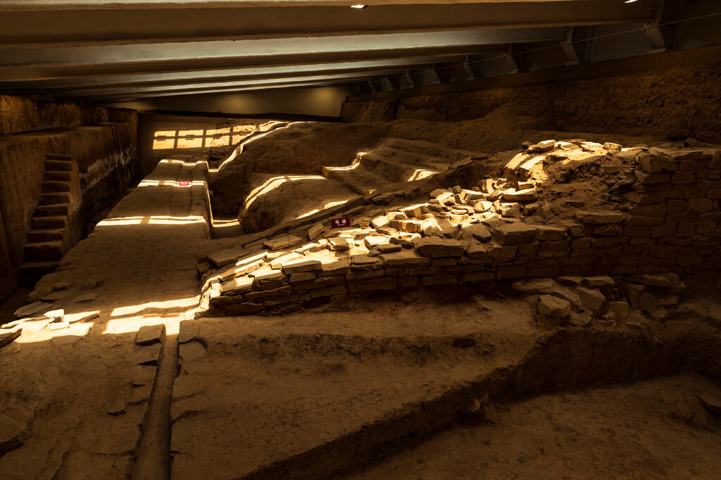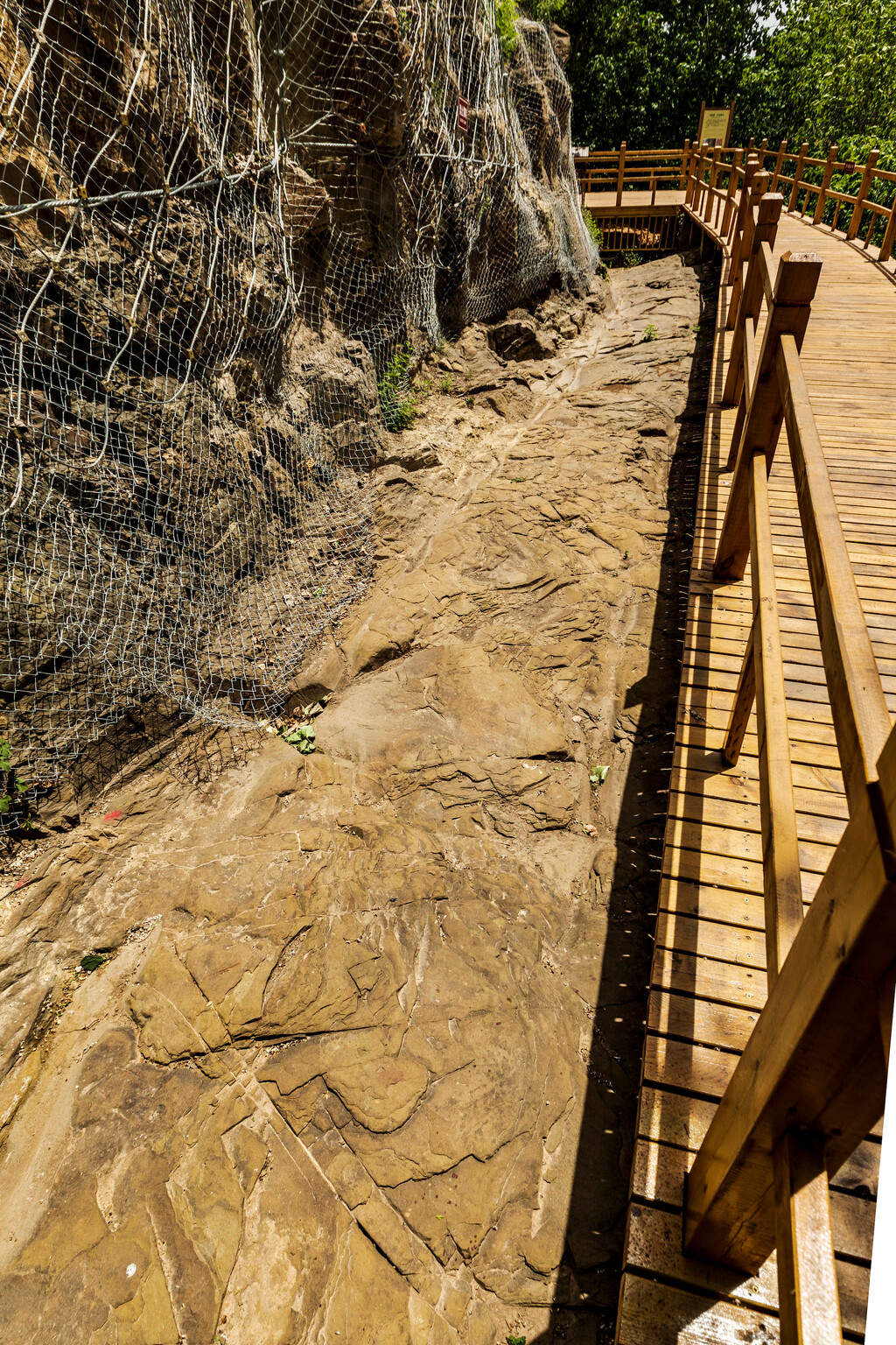 这里游人不多,门票20元,从景区门口往里过桥后是一堵墙,即所谓的「八陡山」,左拐走到关门大约1公里,除了城墙外,旁边一座建筑内是护堤、排水渠、马道等等的考古遗址。过桥右拐是古道路,不长,记载是58米,车辙印痕清晰,尽头岩壁上有石刻题记,王、赵及唐高宗年号上元,清晰可见,似乎是唐朝人的「到此一游」。