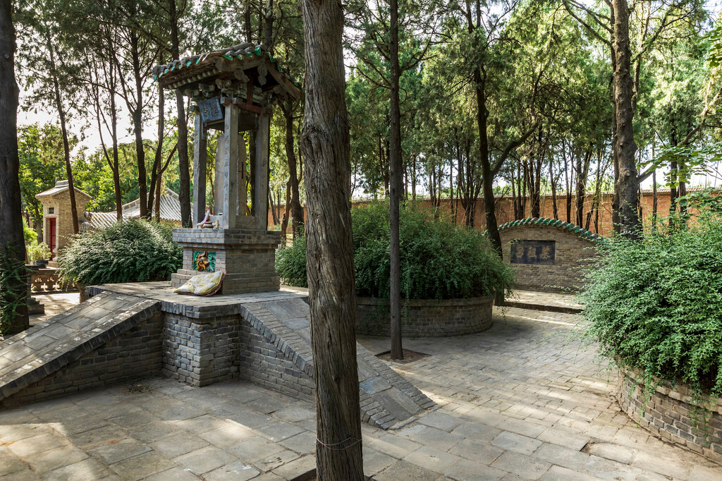 看完三大殿壁画后,往两旁走,发现有「吕祖墓」的指示牌,之前在网上没看到过介绍。原来吕洞宾正是山西芮城永乐镇人(河东蒲州河中府),而永乐宫是在宋吕祖祠基础上重新修建的。不过是真是假也无法确定,河北邯郸似乎也有个吕祖墓(黄粱梦吕仙祠),许多名人墓都有这样的情况。吕祖墓旁还有一座迁移过来的宋墓,也非常精美。
