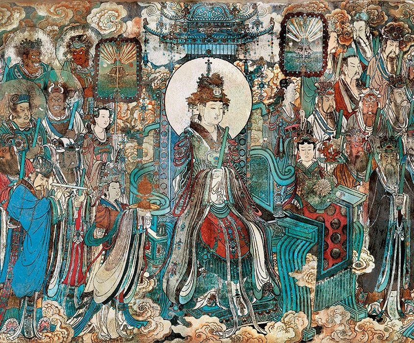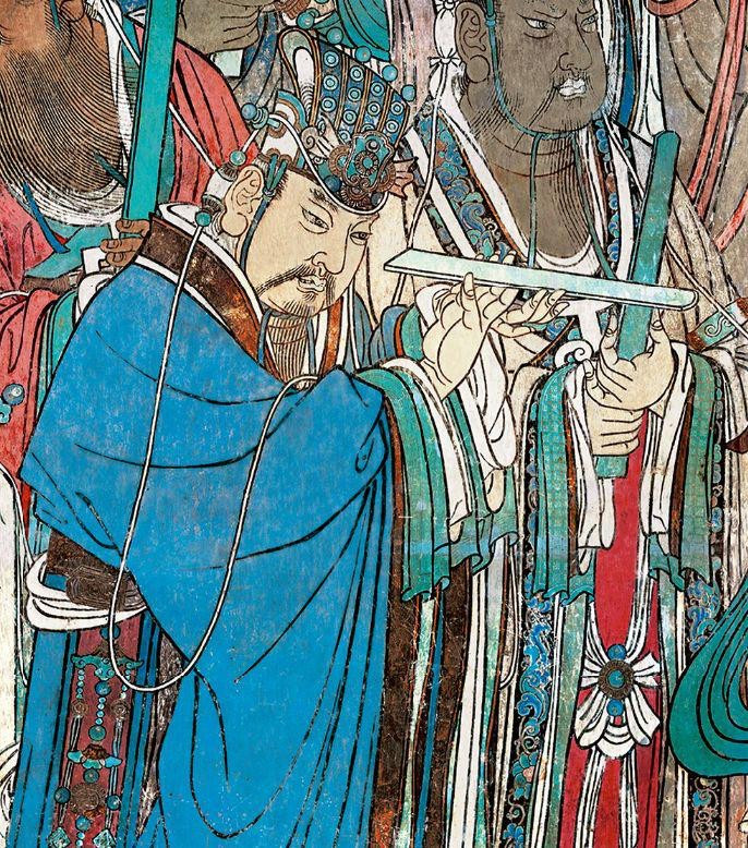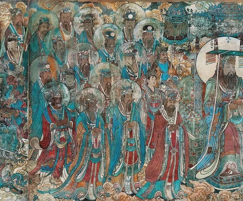 永乐宫是元代建筑,全真教道观,原来在黄河边,因为三门峡水库建设而整体向北迁移到现在的古魏国遗址,所以进景区后,首先可以看到古魏国城墙遗址。永乐宫的壁画《朝元图》名闻遐迩,亲眼所见,更让人惊叹其精美。壁画是严禁拍照的,网上找了些图片以为佐证。