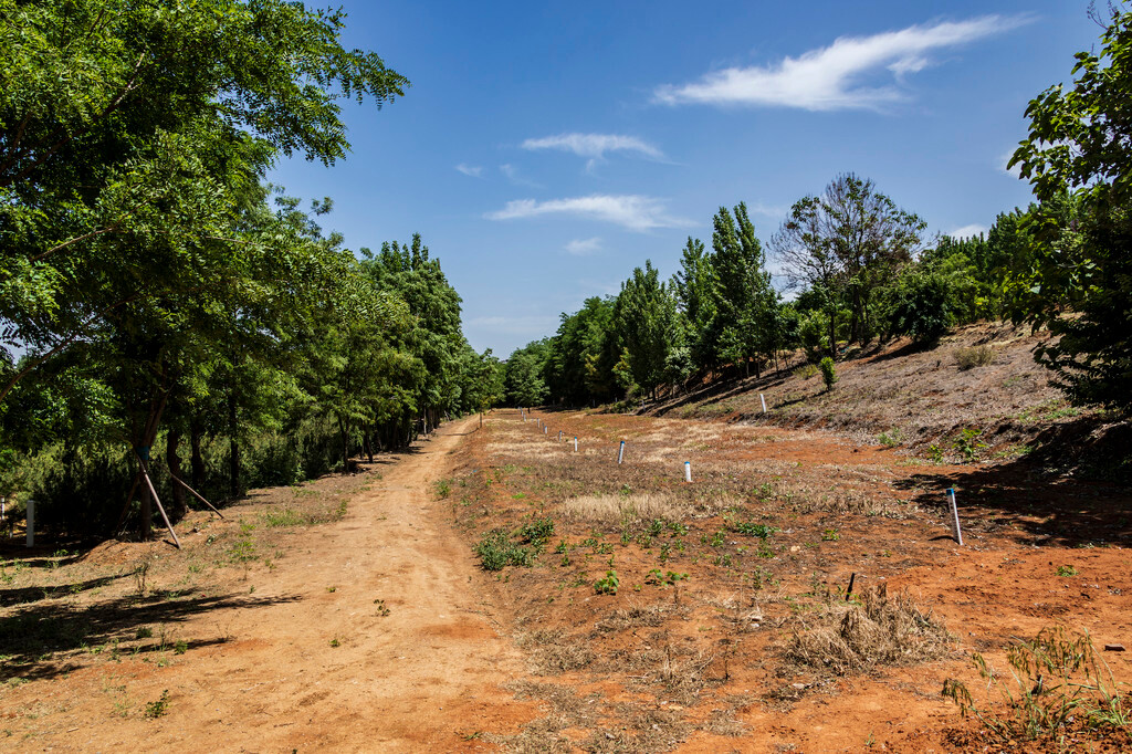 接着去崤函古道石壕段遗址,走高速约1小时10分,72公里。停车场很大,游客中心未在运作,当然就是免费的。往上爬了一段路,仍然弄不清楚到底那条路是崤函古道。回头去游客中心找洗手间,有人看守,不开放,询问了一下崤函古道的具体位置,才知道还没爬到位,于是返身再爬一次,看到一个锁上的铁门,据说外面就是崤函古道。用无人机拍了几张照片,还是将信将疑。