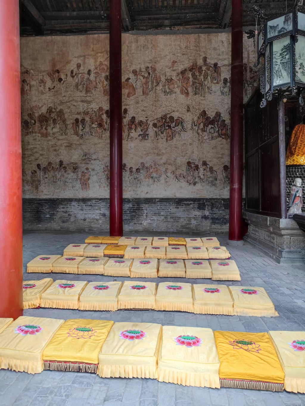 常住院:从塔林走出去是少林寺的寺院(叫常住院吗?)。给人印象比较深的是几棵高大的银杏树,到秋天黄叶时一定很美。院子里有几座龟背驮着的高大的碑,碑文就没耐心和水平去细究了。请了个讲解,非官方的,虽然讲得也很卖力,但更偏向于娱乐性,不那么严谨专业。寺庙里的东西本来也是大同小异的。说到去年郑州这边大雨大水,少林寺也塌了不少房子。