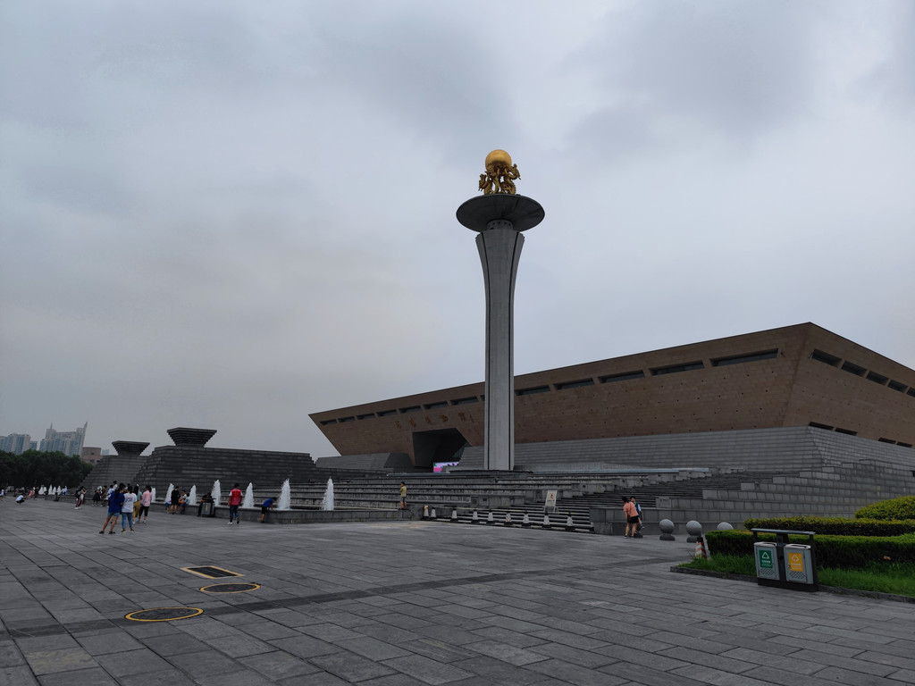 周王城天子驾六博物馆:这博物馆离枫叶酒店近,以沿中州中路步行过去就行,路南边是周王城广场(旁边有西工小街),有些雕塑,路北边就是天子驾六博物馆,营业到18点。这博物馆是要收费的,门票30,教师和学生可以半价,凭教师证扫描件都可以,年龄不大的学生凭身份证就可以。博物馆最主要的是展示发现的周天子出行车马队的葬坑,里面整齐地摆放着马的骸骨和车驾,直观展示了什么是“天子驾六,诸侯驾五,卿驾四,大夫三,士二,庶人一”的礼制。因为刚关注了楚王墓葬发现僭越用了驾六的规格的事,所以对此印象比较深。想来楚国原本可能不太属于中原王朝,或许只属于外部归附而来的,随着周王权的衰落,自己翅膀硬了,也就率先称王,用上驾六的顶配了。这里最好还是租个讲解器,然后沿着墓坑的边上说,边听边看,才会有点收获。馆里的其他展览,规模很小,附带的。