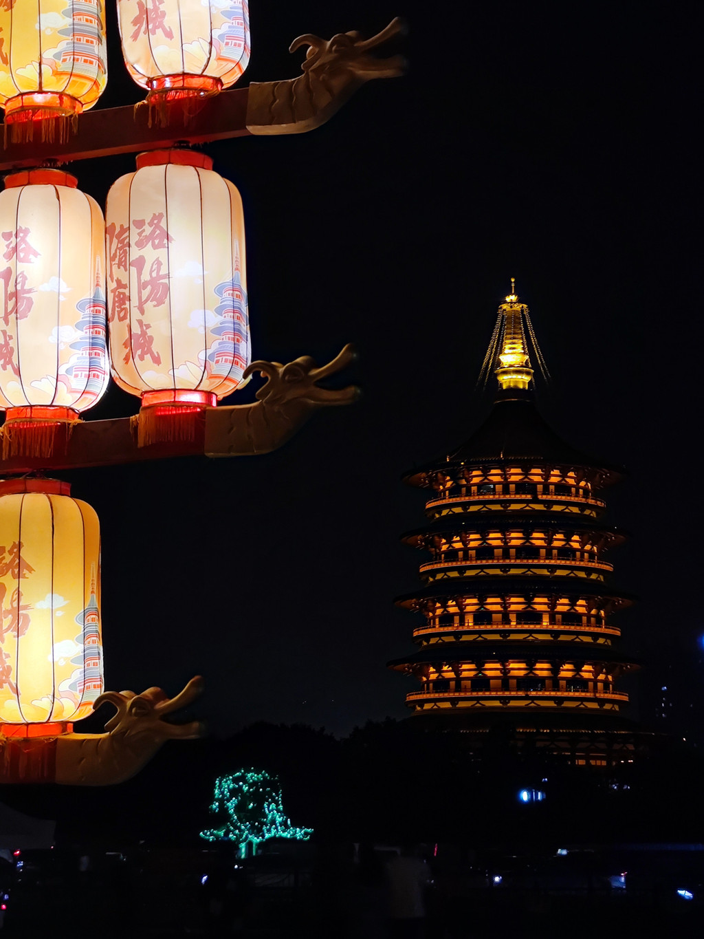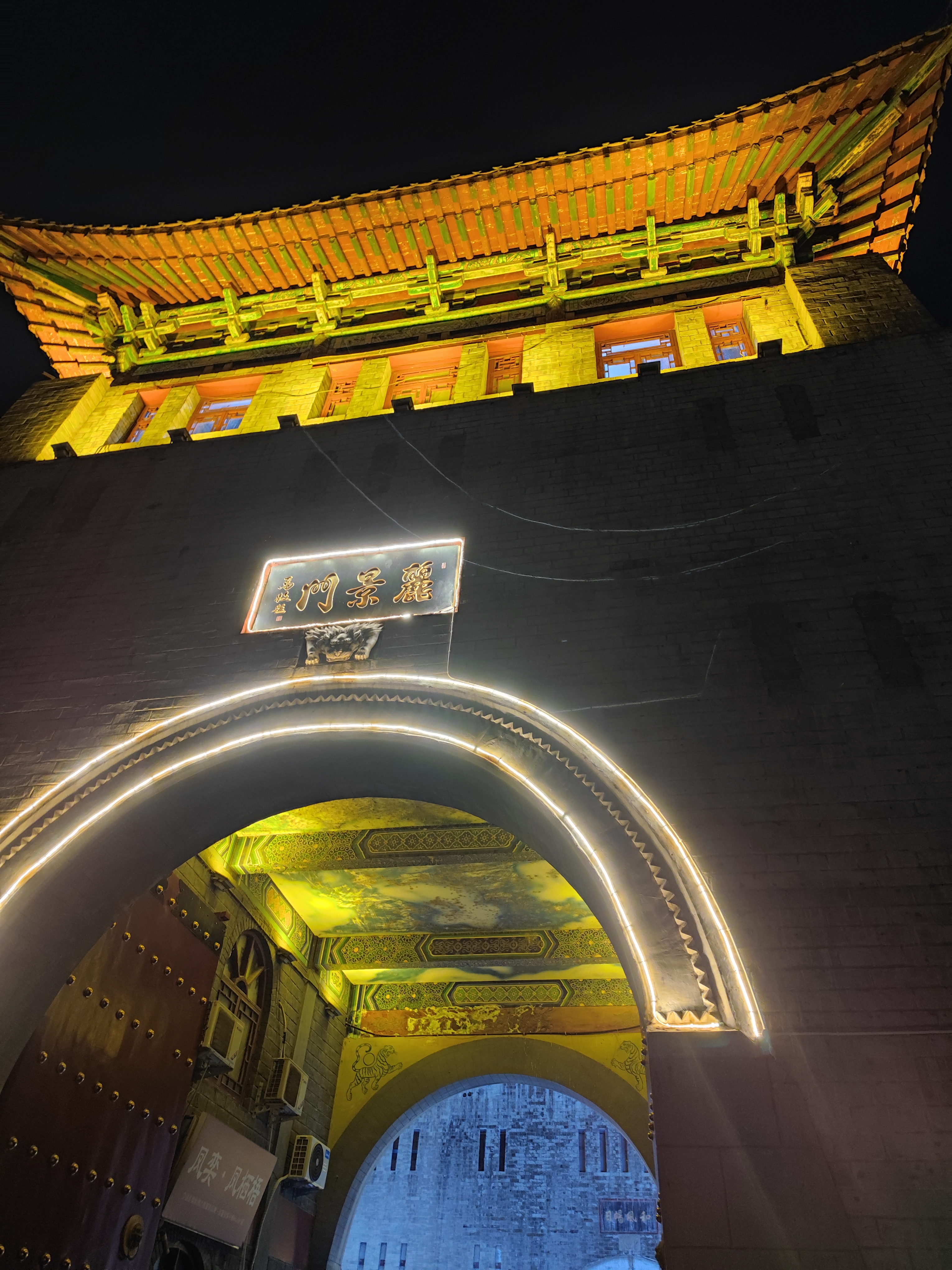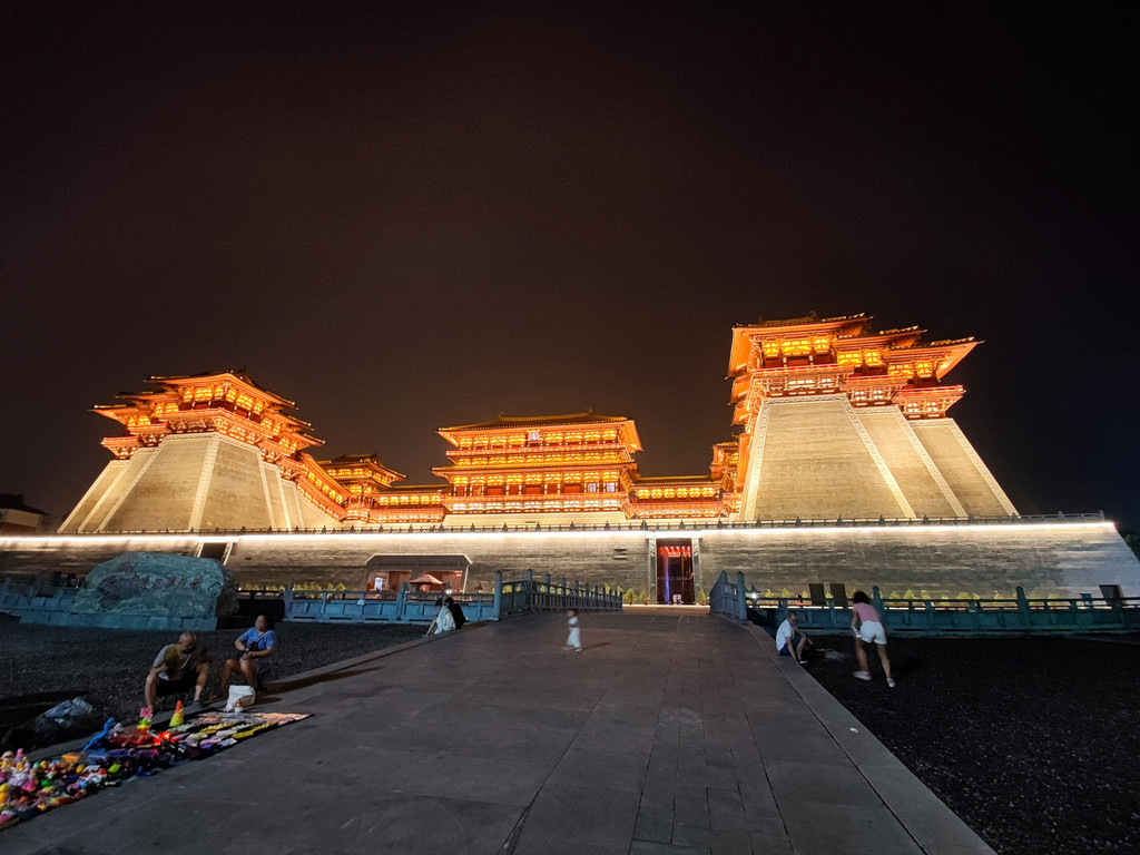 丽景门、十字街:想着半天在路上,啥都没做,虽然晚上九点多了,还是打个车去丽景门,想着是找点本地小吃。打车过去没多远,车费9元多。丽景门似乎是半月型的设计,高三四层,看去还是很雄伟的,门前还有护城河。进去直走一条小街(西大街),两旁小店或小摊,卖牡丹花饼、银丝酥、甜酒汤圆、冰凉粉之类本地外地小吃,各种旅游纪念品,还有些做水席烩面的餐厅,其他非本地小吃也有,灯火通明,游人熙熙攘攘,人声音乐声无比嘈杂。虽是37、38度的高温,还是有些姑娘穿着汉服,这里几十块就能租一套汉服,还可以包梳头发。牡丹花饼的口感味道跟云南鲜花饼没啥两样,银丝酥在边卖边展示做法,口感不错,除此以外似乎就没啥真算本地特色的小吃了。然而炎热嘈杂,人来人往,也让人没啥胃口。再往前到中心路口就北大街拐,这边路宽一些,于是除了两边大些的餐厅外,路中间还加了两排小吃屋摊,人多人挤的,看去倒是热闹繁荣。这西大街北大街东大街南大街加起来应该就是所谓的十字街吧。后来看地图,沿东大街继续走可以走到洛邑古城,那边可能更适合文青小资,但当时没注意到,也是累了,感觉收获不大。总结以后没太大必要再来这样的小吃街凑热闹了。回程的出租车花了15,绕远了点,导航有点傻,不全怪司机。司机都挺热情的,可惜方言腔太重了,实在没听懂几句,只好敷衍应付两声。