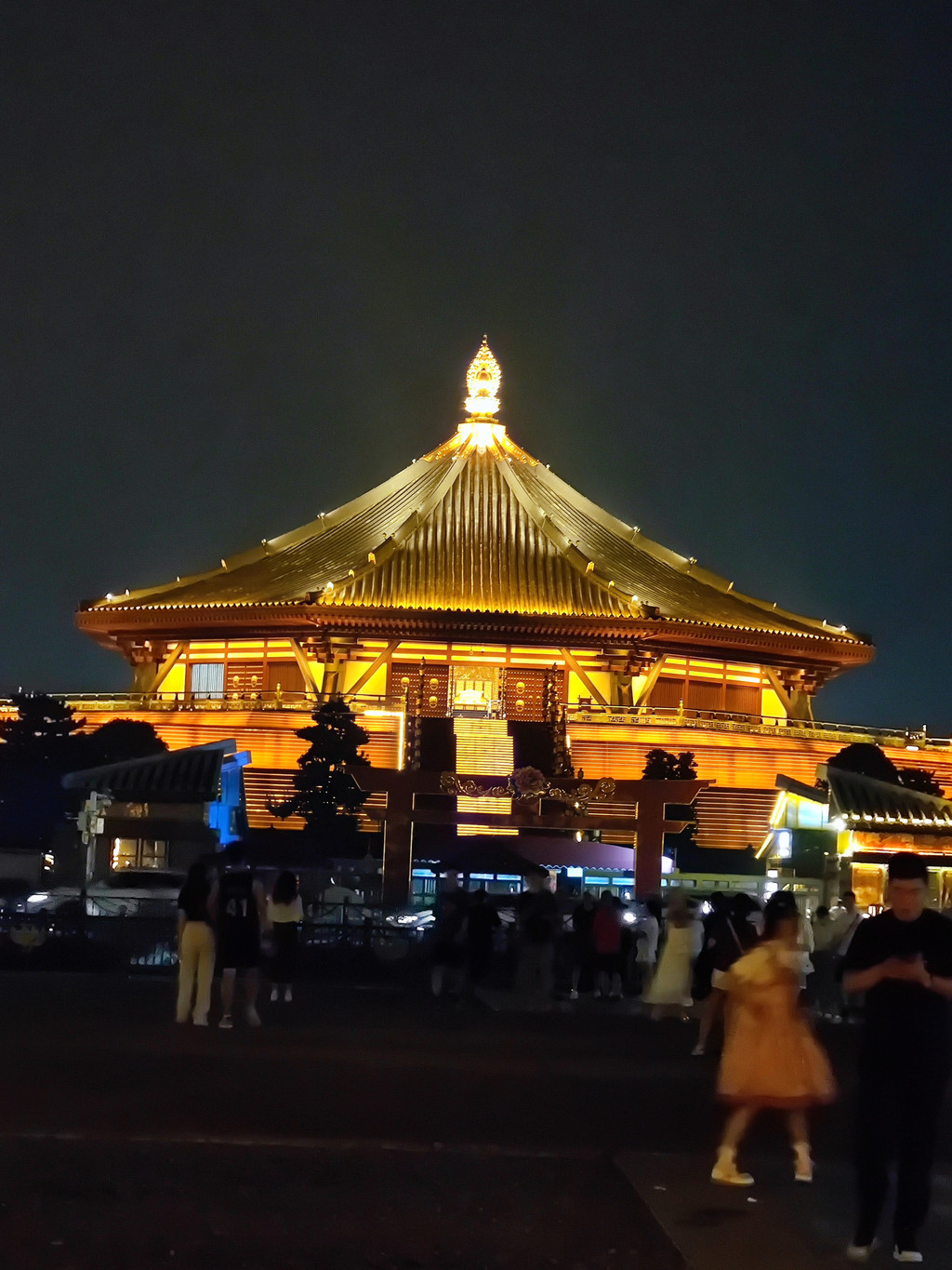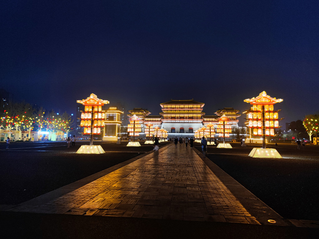 应天门:从天子驾六博物馆再往东走一个街区,就到了应天门。应天门与明堂天堂隔路相望。这几个景点的攻略没做足,有人说只是假古董,只值得外面照个相。应天门高大雄伟,但绕一圈照完几张相之后不知做什么好了,只等亮灯再拍几张,可亮灯要等到晚8点。其实可以买个票进去看一下了,能上到城楼上,说是底下罩着有古城的遗迹。对面的天堂明堂门票至少要120,感觉贵了,毕竟少林寺也才80。终究哪都没去,趁没亮灯步行到周公路与黄梅路交叉的地方,那里超市有食街。不过这边以大排档为主,找了家叫上海小厨的,还不错。折回头时已是晚上9点后,灯是亮了,但可能已经误了应天门的灯光秀(据说8:00,8:20,8:40各有一场)。