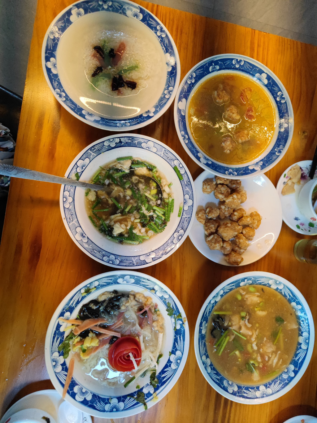 水席:楼下就是一家餐厅,对面还有一家,菜单都是差不多的。决定尝一下水席,点了一个2-3人的套餐,五个菜四个是汤,就一个甜的八宝饭没泡着水,倒是充分理解了什么叫水席。其实挑两样见识一下就好,基本上都是水泡着什么,未必能有人能喜欢能习惯。至于烩面,那也是汤面。甜酒汤圆还可以,当然那也是一大盆的汤水。