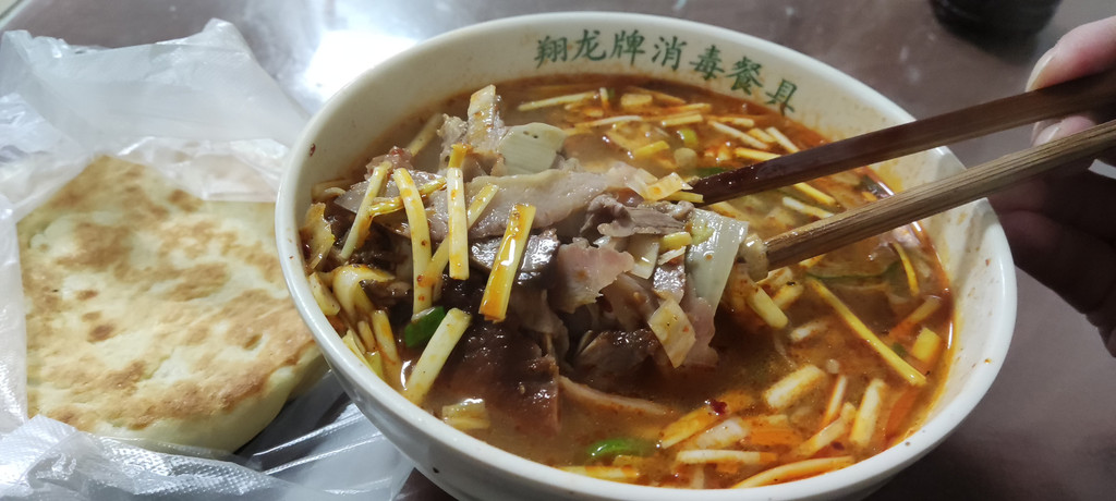 尝过如下食物:不翻汤、糊辣汤、牛肉汤、驴肉汤、驴肠汤、驴肉馄饨、驴肉火烧、烤串、奶宝、烧鸡。对于成都人而言,最值得推荐的是驴肉系列,毕竟牛肉汤、羊肉汤成都也多,驴肉就很难见到了。