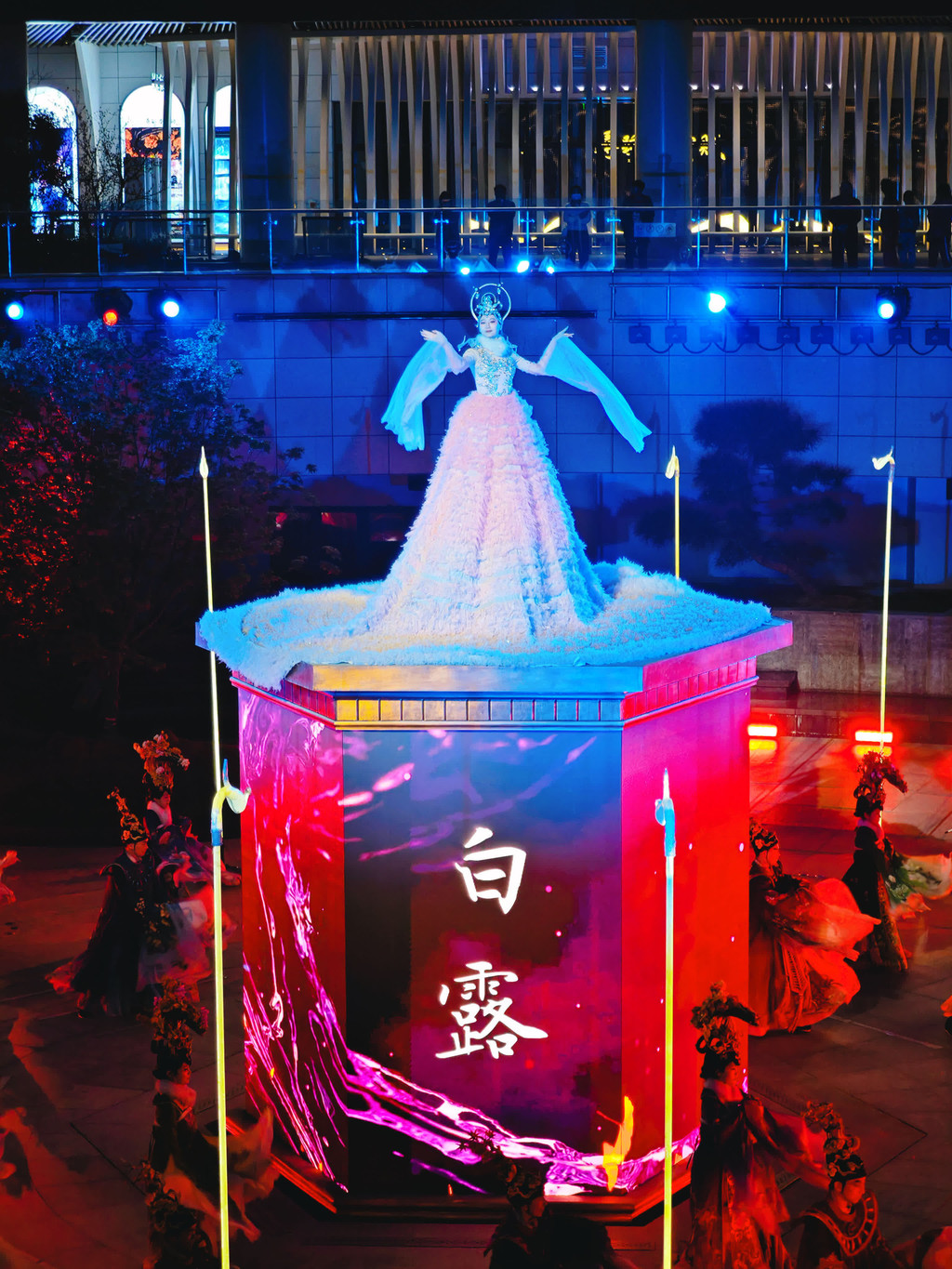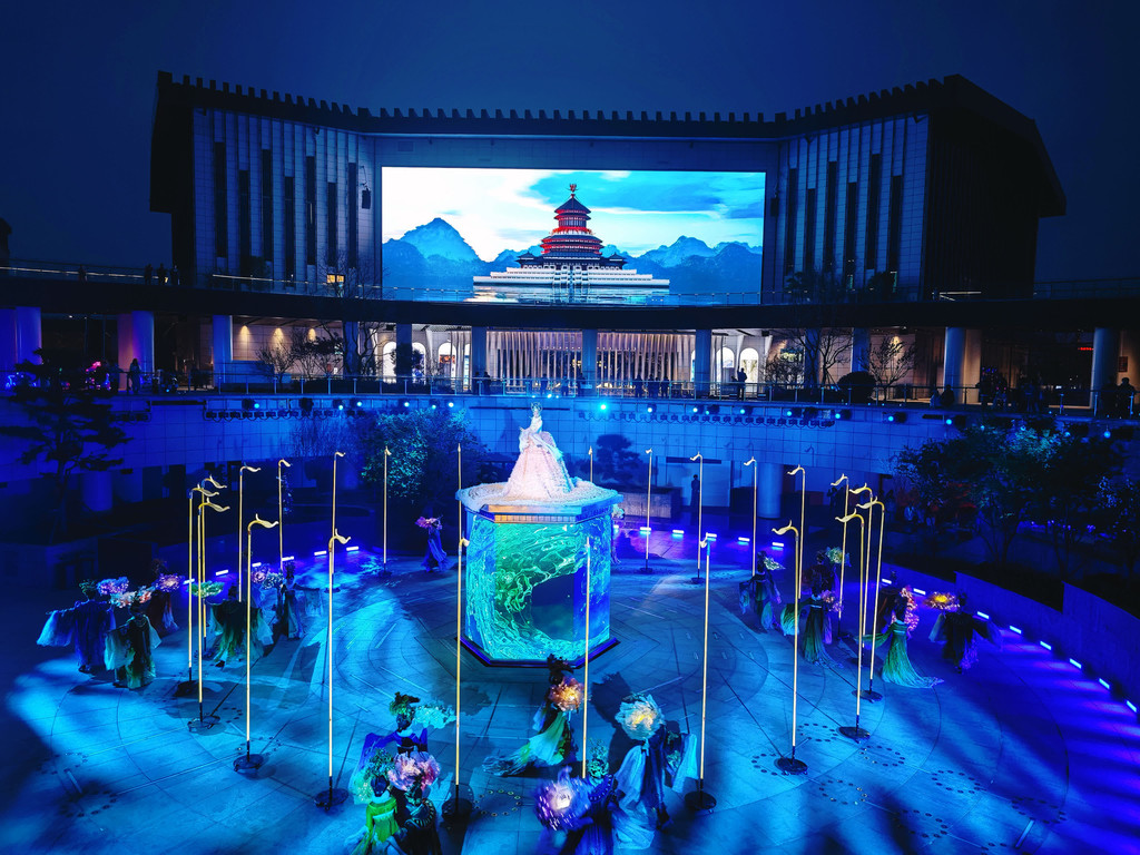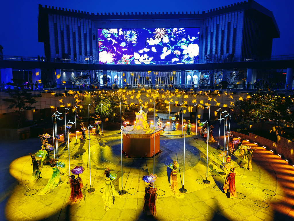 每晚7时许,在大河荟中心广场,将上演以河洛文化、中国二十四节气文化为主题的城市户外光影秀《河洛掌灯》。