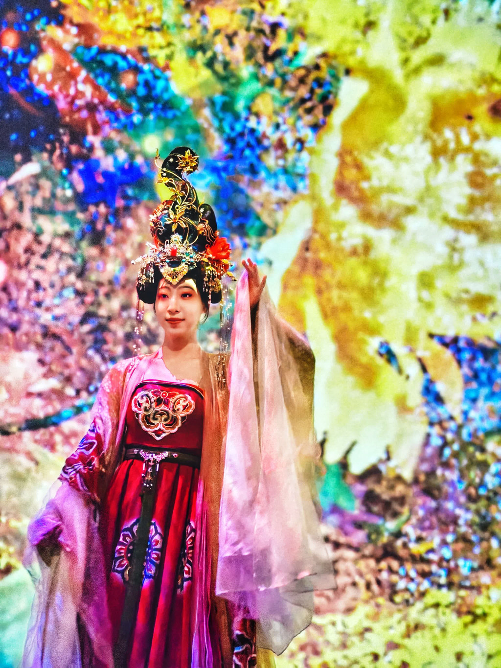 进来后我们在一步一景的探索中,一场关于洛阳神韵的寻觅之旅正在上演,一层有汉唐小姐姐带你感受花开时节动京城的雍容华贵。