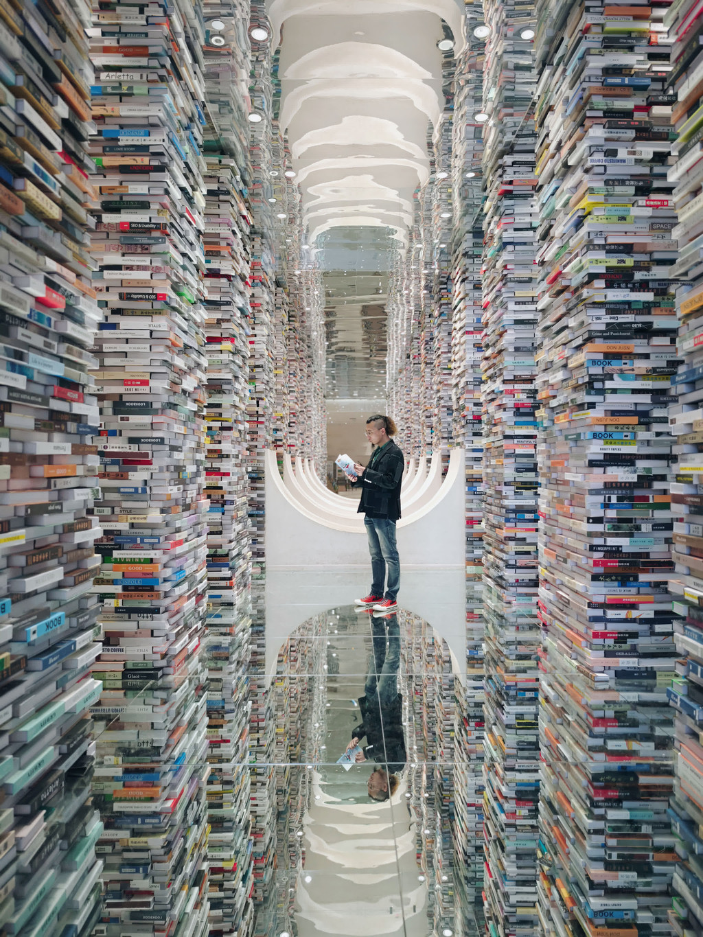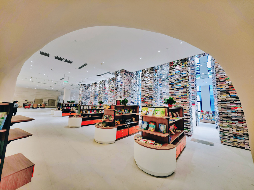 现在很多城市都有一个好看的网红书店,大河荟也有一个,进来就是用书模型做的几个巨大的柱子,很适合拍照打卡。