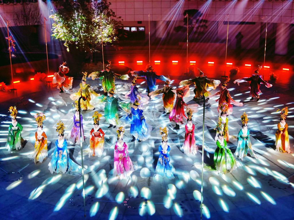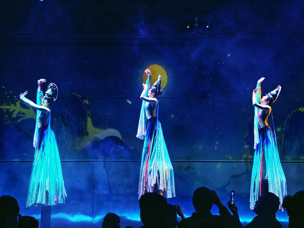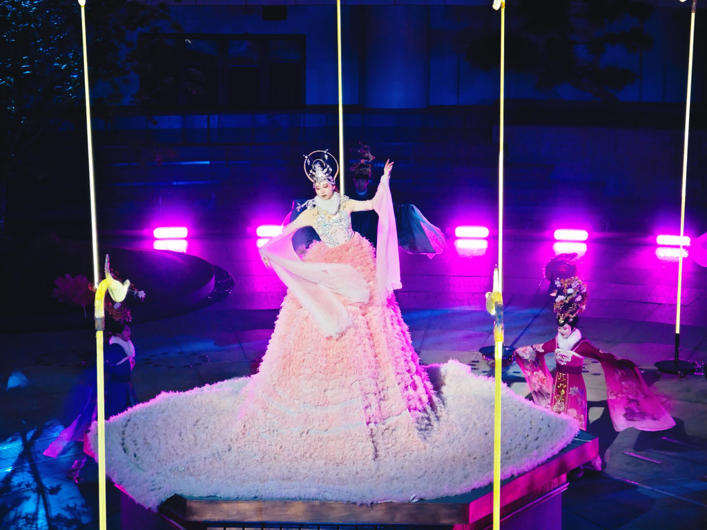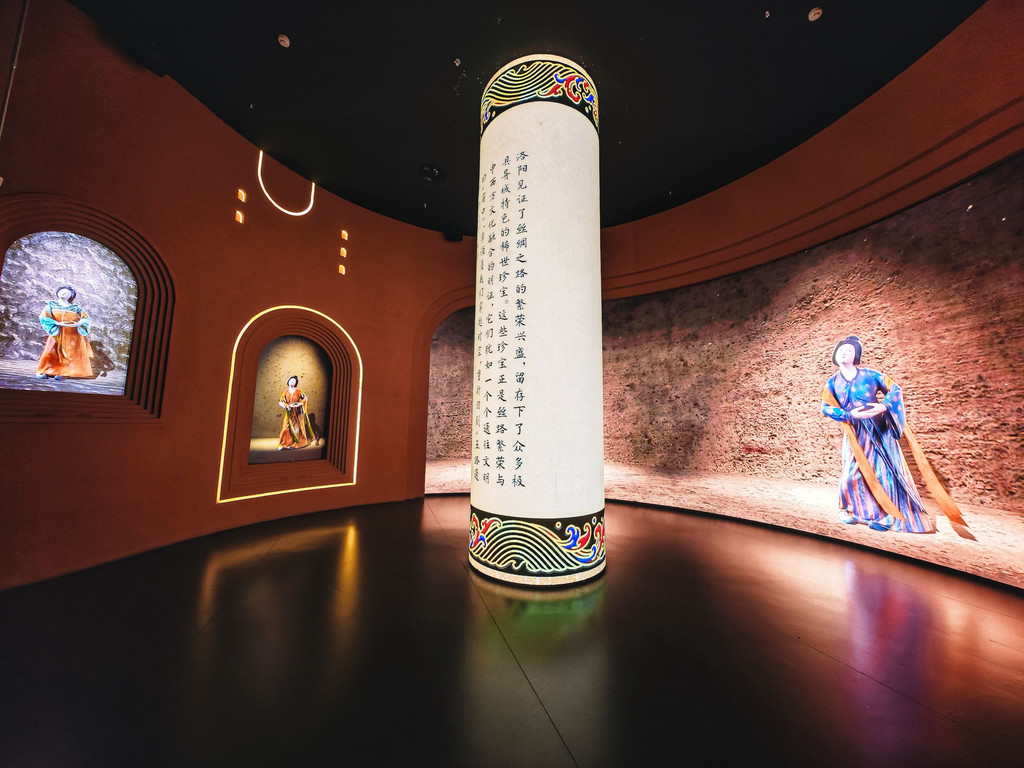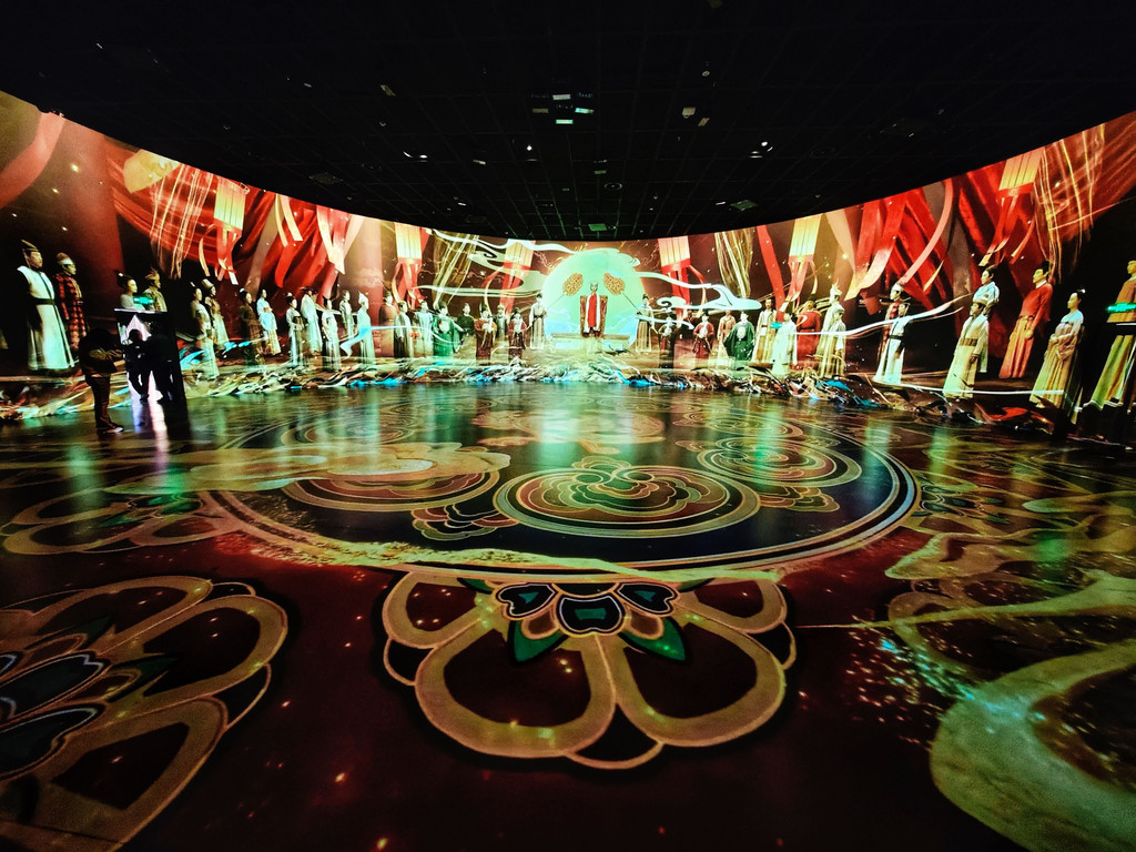 我们跟随演员穿越到不同时空中,感受洛阳历史文化的魅力,完美融合科技与历史,虚拟现实、全息影像,将数字博物馆与沉浸式真人演出结合,称得上文化与视觉盛宴。