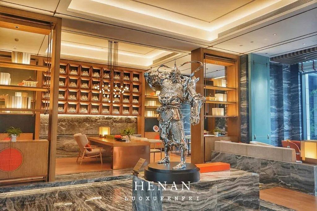 这次我在洛阳入住的是华茂春松酒店,就位于洛阳龙门站旁边的大河荟,去高铁站步行仅十几分钟,对面就是龙门汽车站,交通相当便利!酒店采用了隋唐风格的主题设计,门口和大堂等公共空间都摆了取材自中国神话传说中的角色雕塑,造型气派且颇具内涵!