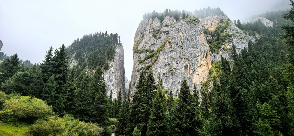 天降蒙蒙小雨,雨雾中的石林似乎有点朦胧仙境的感觉。