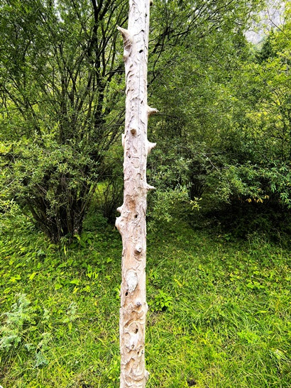 一棵没有树皮的枯树,大自然似乎在树身上刻满了经文。