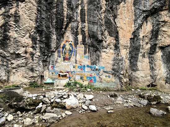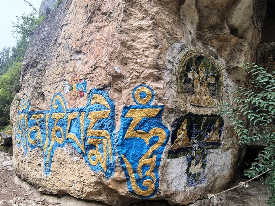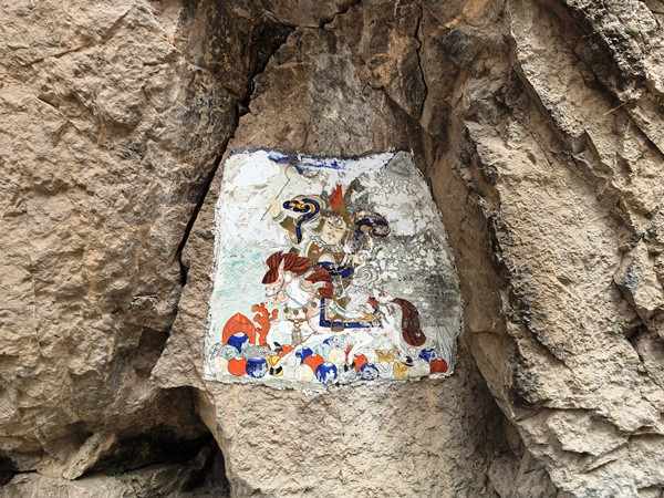 绘制在岩石上的神像,刻画在岩石上的经文。几百年后可能会成为文物。