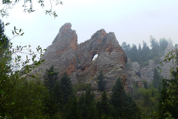 神箭穿石。相传是格萨尔王神箭射山,穿峰而过。