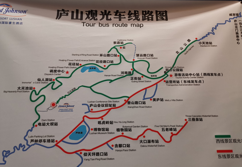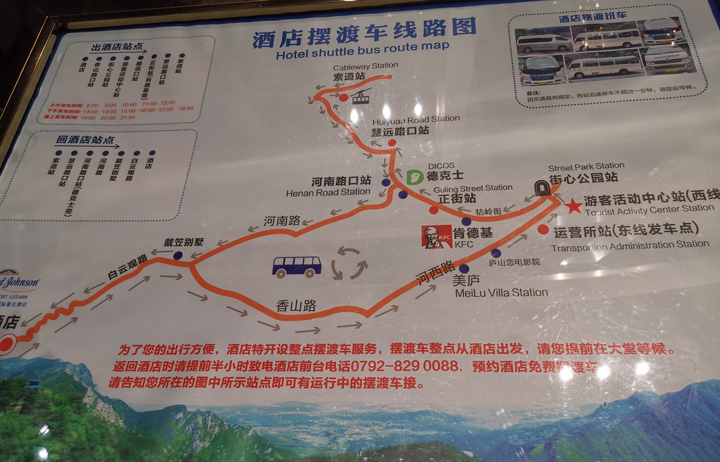 G.入住酒店(入住位于庐山山谷白云观路的庐山嘉豪淮海国际豪生酒店)。庐山风景区