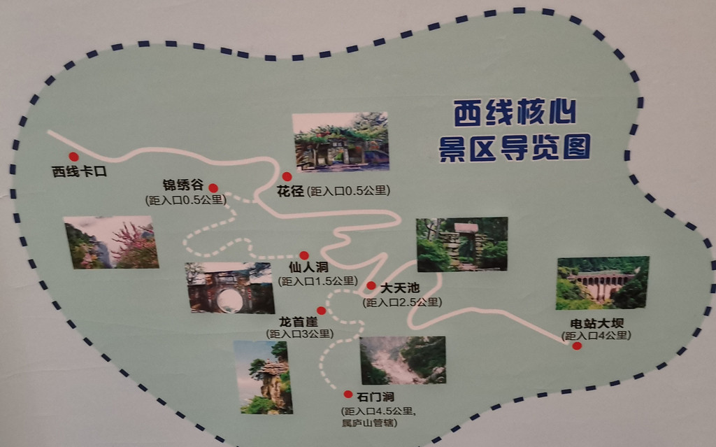 毛泽东主席诗句“暮色苍茫看劲松,乱云飞渡仍从容。天生一个仙人洞,无限风光在险峰。”所描写的就是锦绣谷景色。庐山风景区锦绣谷