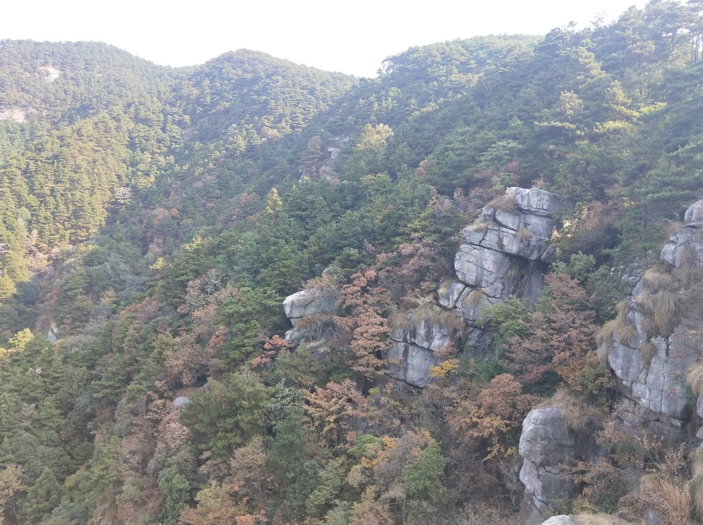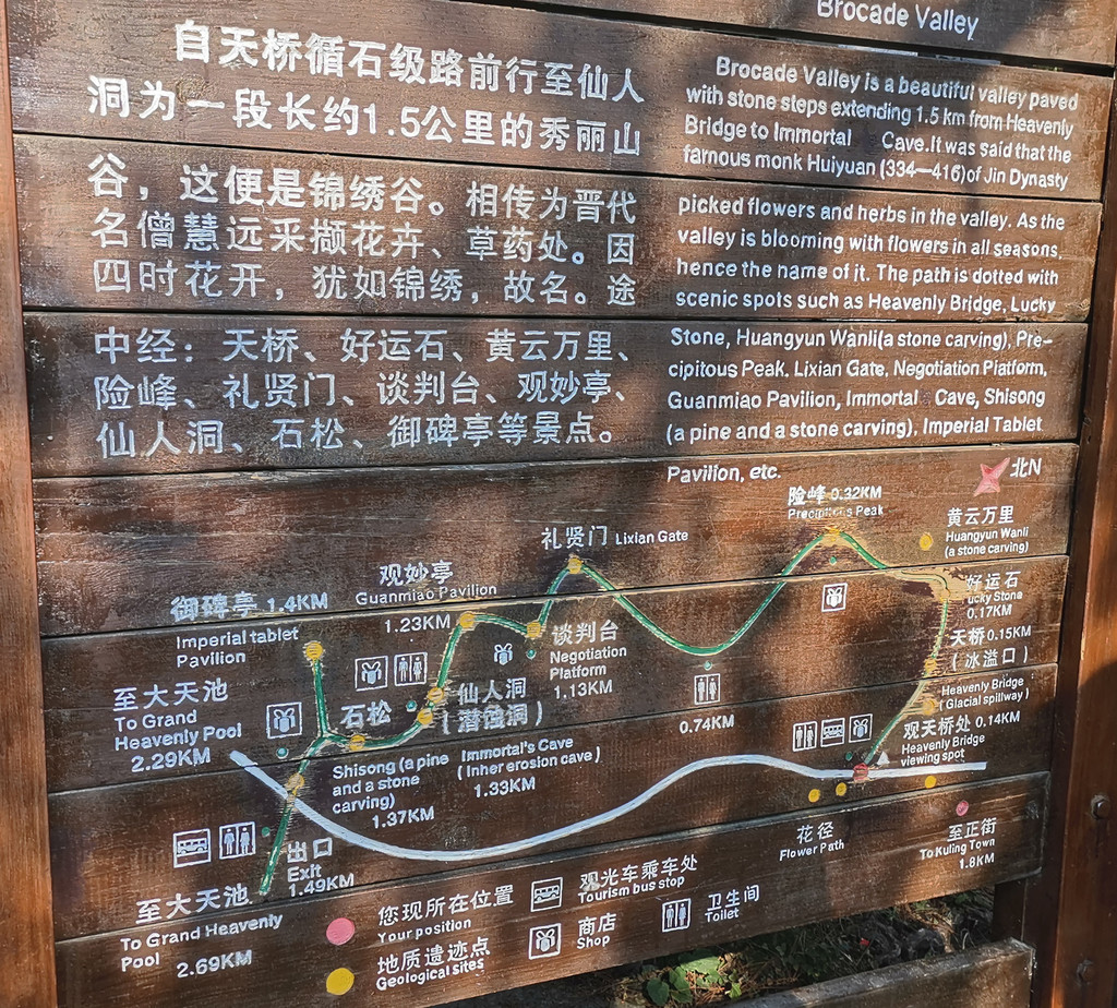 锦绣谷由大林峰与天池山交汇而成,长约1.5公里,是一个平底陡壁的山谷,因四时花开,犹如锦绣,故名,谷中花奇、石怪,垒垒巨石,形态各异,奇峰怒拔,气象万千。