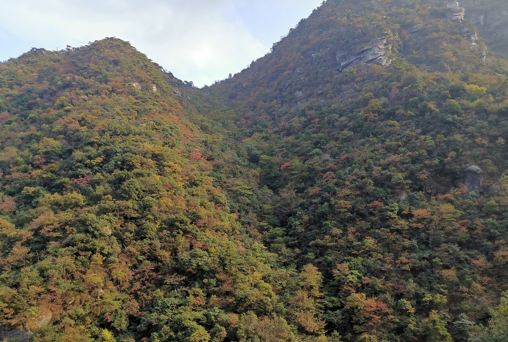 险峰峡谷,视野开阔,花团锦簇,秋意一片,锦绣谷景色美哒哒。