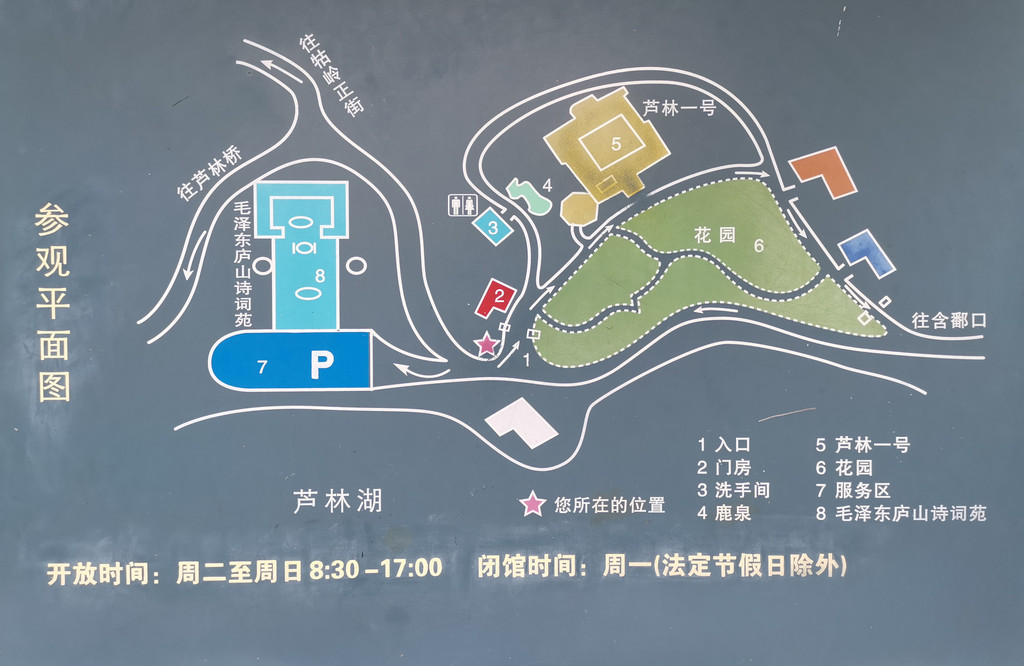 芦林一号别墅位于芦林湖畔,是第一代领导人在庐山期间居住及日常办公的地方,现改为庐山博物馆。