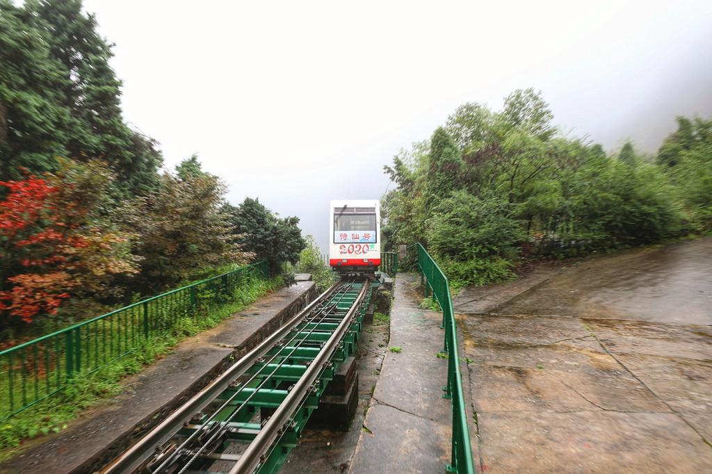 再往前走,就到了一处峡谷,这里是一处绝佳的观景平台,从这往上看,只见缆车从轨道上呼啸而过,就好像《千与千寻》中的列车一样,极具梦幻之感!