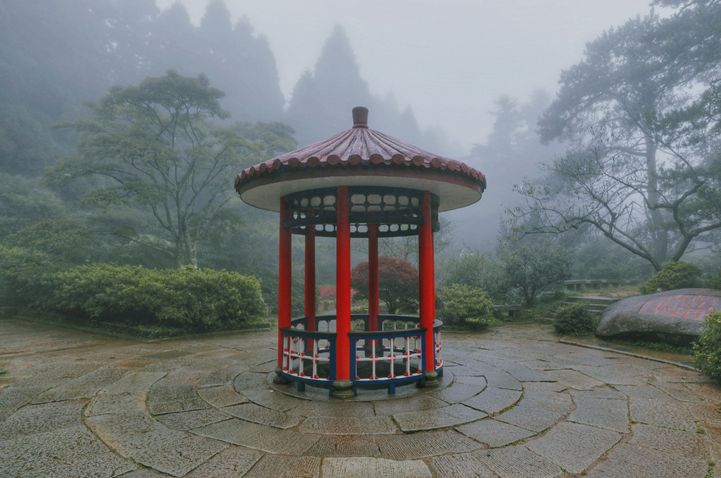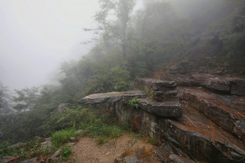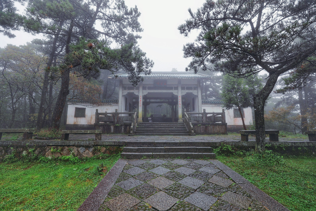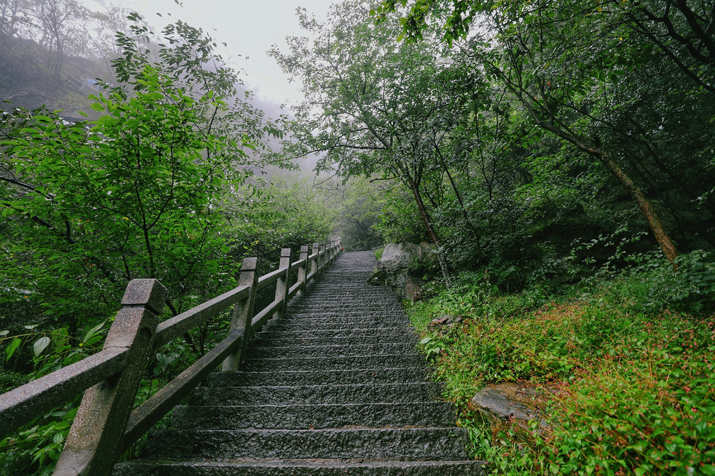 在一个下着雨的初秋,沿着石阶往前行走,仿佛腾云驾雾一般,不似尘世中人。