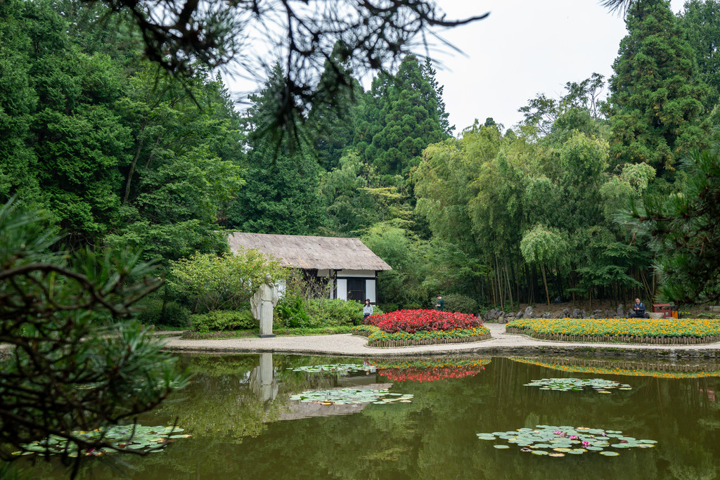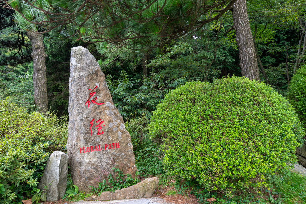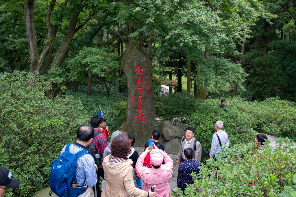 第三天的行程,去往仙人洞的路上,路过一处叫做花径的大庭院,相传这里曾是庐山历史上的三大名寺(西林寺、东林寺、大林寺)之一的大林寺所在地。在唐代,这里被人们誉为“匡庐第一境”,花径曾是唐代大诗人白居易咏《大林寺桃花》的地方。