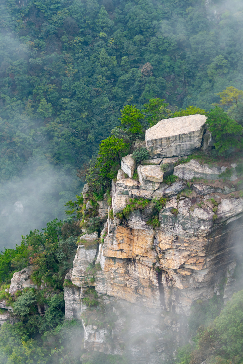 站在险峰上,遥望庐山狮子口,云雾时浓时淡,淡的时候可以看到远处的山峰呈现一个清晰的倒“V”形,而浓的时候,你望出去就是雾茫茫一片。非常有幸,这两种景象,我这一趟上险峰,全部都看到了,刚登险峰时,几乎是一点云雾都没有。但是准备航拍,飞机刚刚升起来的时候,云雾忽然一下就冲了上来,而且流速极快,瞬间进入仙境
