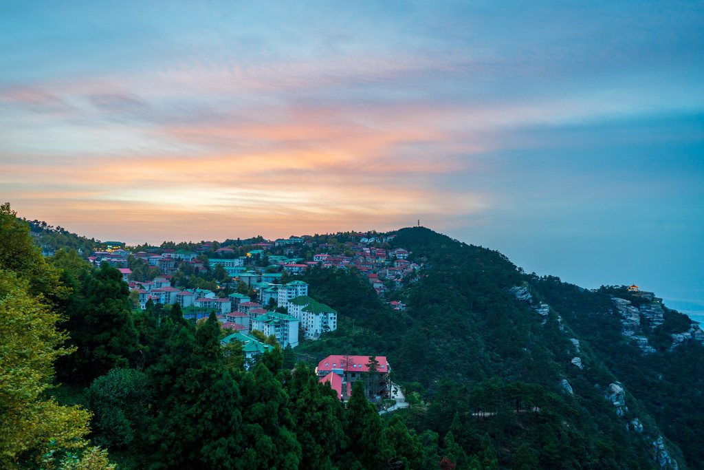 站在观景台上,虽然太阳已经落去,但其余光仍照耀在远山天际的云上,映出粉中透黄,黄中透紫的,暮霞光影。在搭配上观景台所能看到的半山建筑区,风格鲜明且独特的各种老式建筑,成群成片,依山而建,仿佛趴在半山坡一半。这半山坡的老建筑,搭配迷人的晚霞,景色简直不要太美,真的让人超贪恋这一段时光,贪恋眼前的这一幕画面。