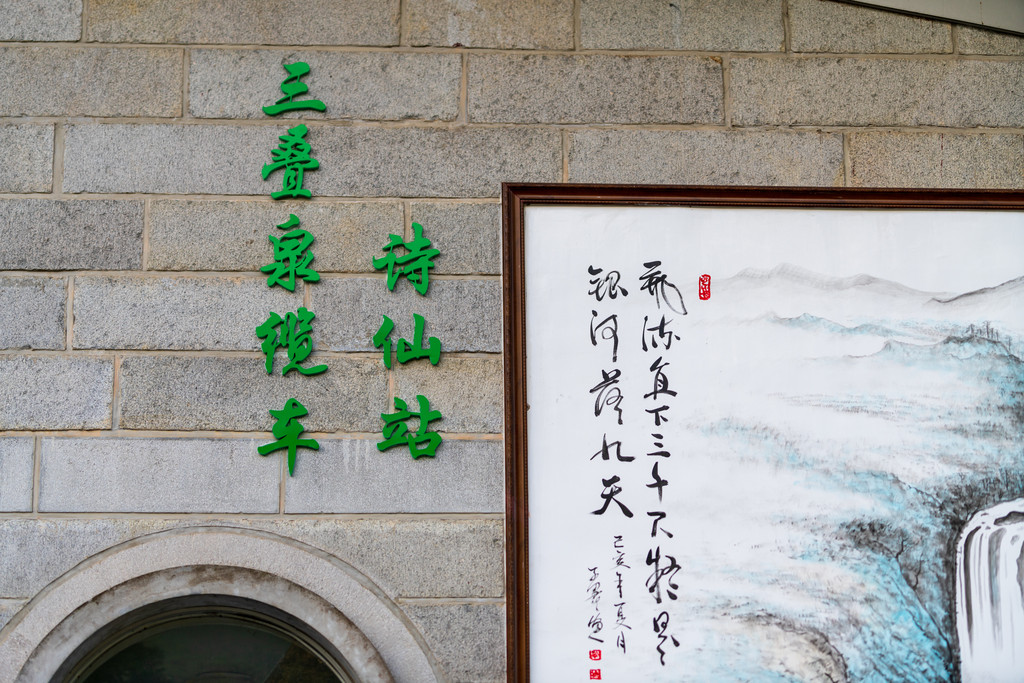 与常规的缆车不同,三叠泉缆车只有两节车厢,往返各一趟,索道全长将近1500米,高度落差在150米左右,采用目前最先进的有轨缆车技术,依山而建,穿梭于山林之中跨沟越溪,不仅可以欣赏美丽清雅的景色,还能够节省宝贵的时间和游玩的体力。